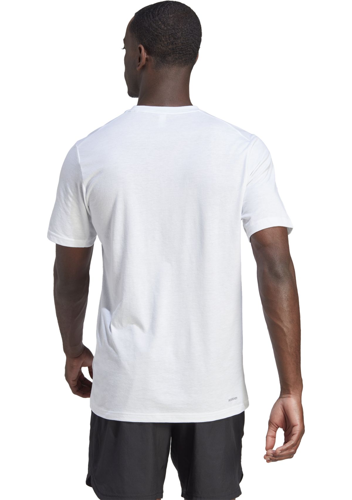 This men's training t-shirt is designed for comfort and performance during your workouts. Crafted from a blend of recycled polyester and cotton, it features AEROREADY technology to keep you cool and dry. The crewneck and pullover design provide a classic, comfortable fit, while the screen-printed front and back add a stylish touch. Experience enhanced breathability and freedom of movement with this t-shirt, perfect for your active lifestyle.