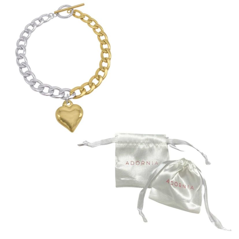 Adornia Tarnish Resistant Mixed Metal Heart Chain Toggle Bracelet