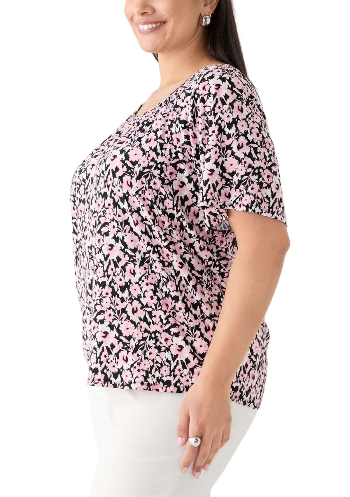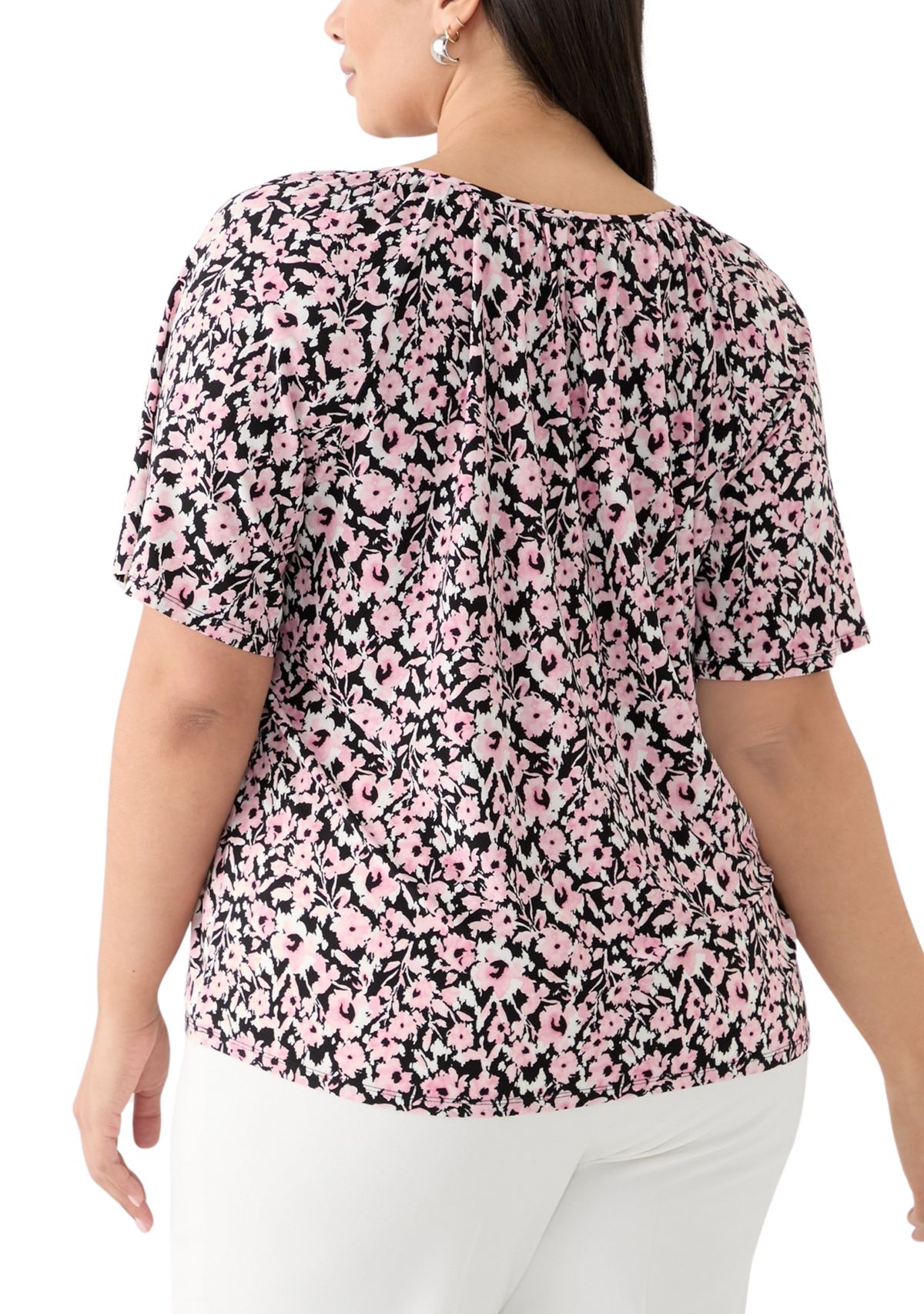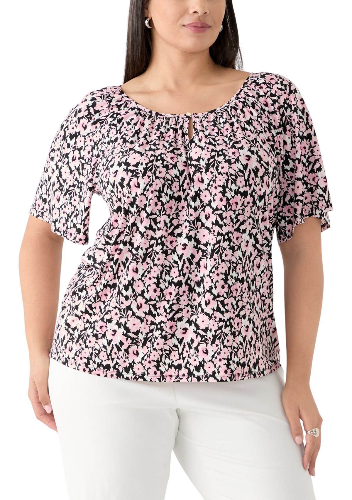AK Anne Klein Plus Size Printed Drape Sleeve Blouse