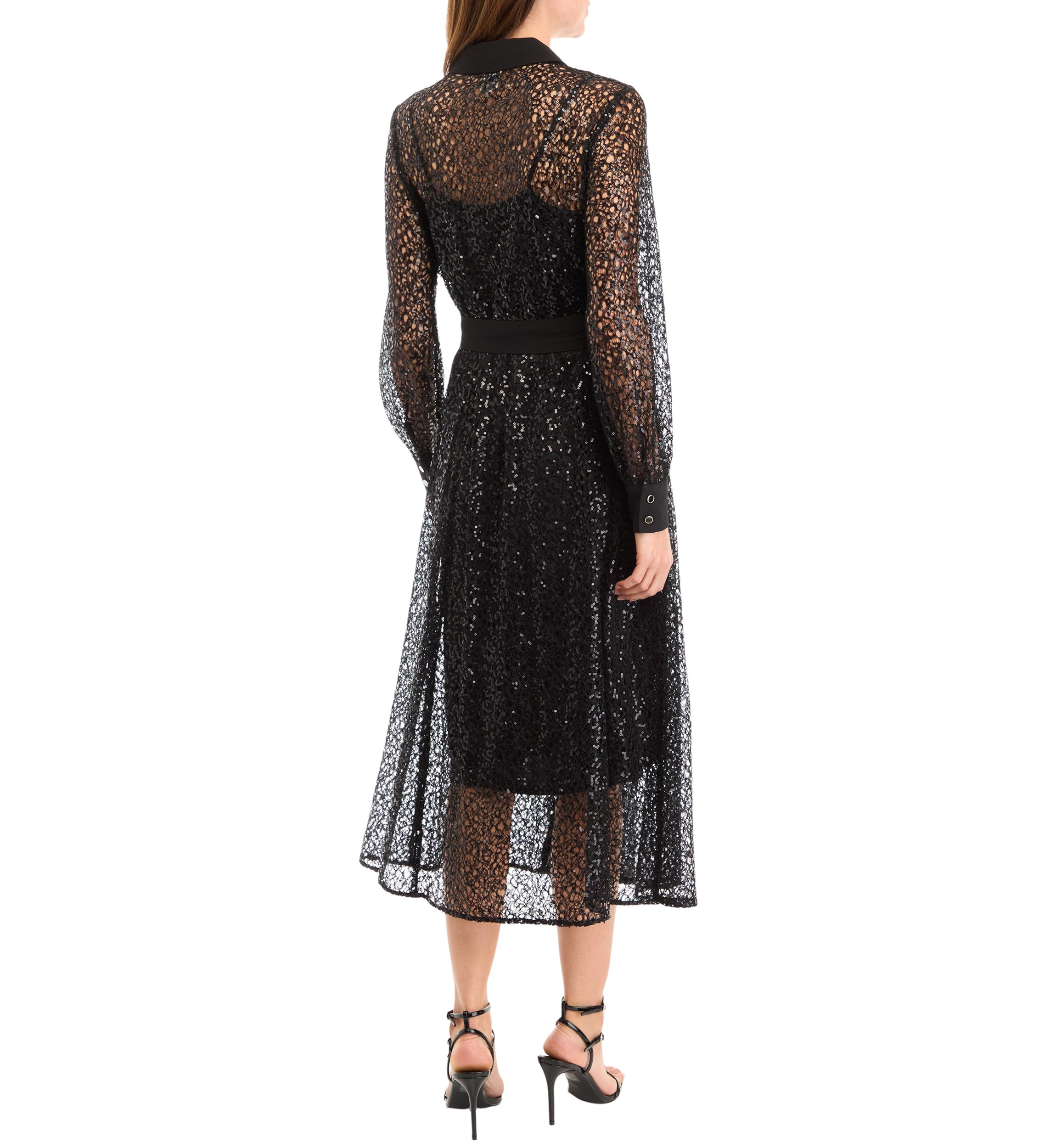 Elevate your style with this sophisticated midi dress from Anne Klein. Its flattering A-line silhouette and tie closure exude elegance, while the long blouson sleeves and collared neckline provide coverage and comfort. Fully lined for a polished finish, this dress is crafted from durable polyester, ensuring a flawless look throughout the evening.