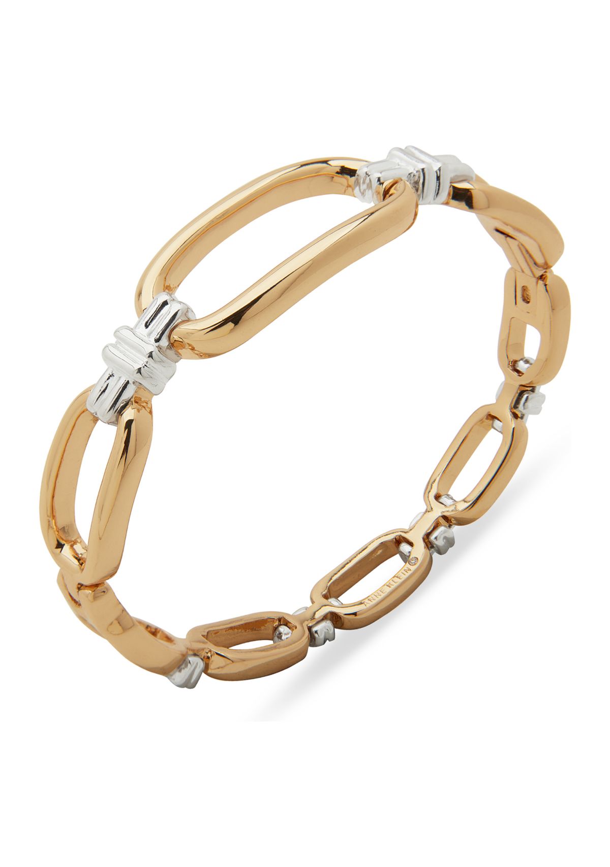 Anne Klein Two Tone Link Open Hinge Bangle Bracelet