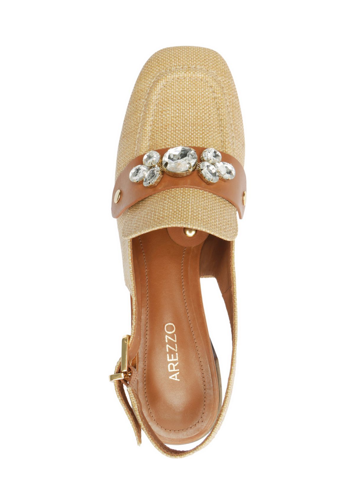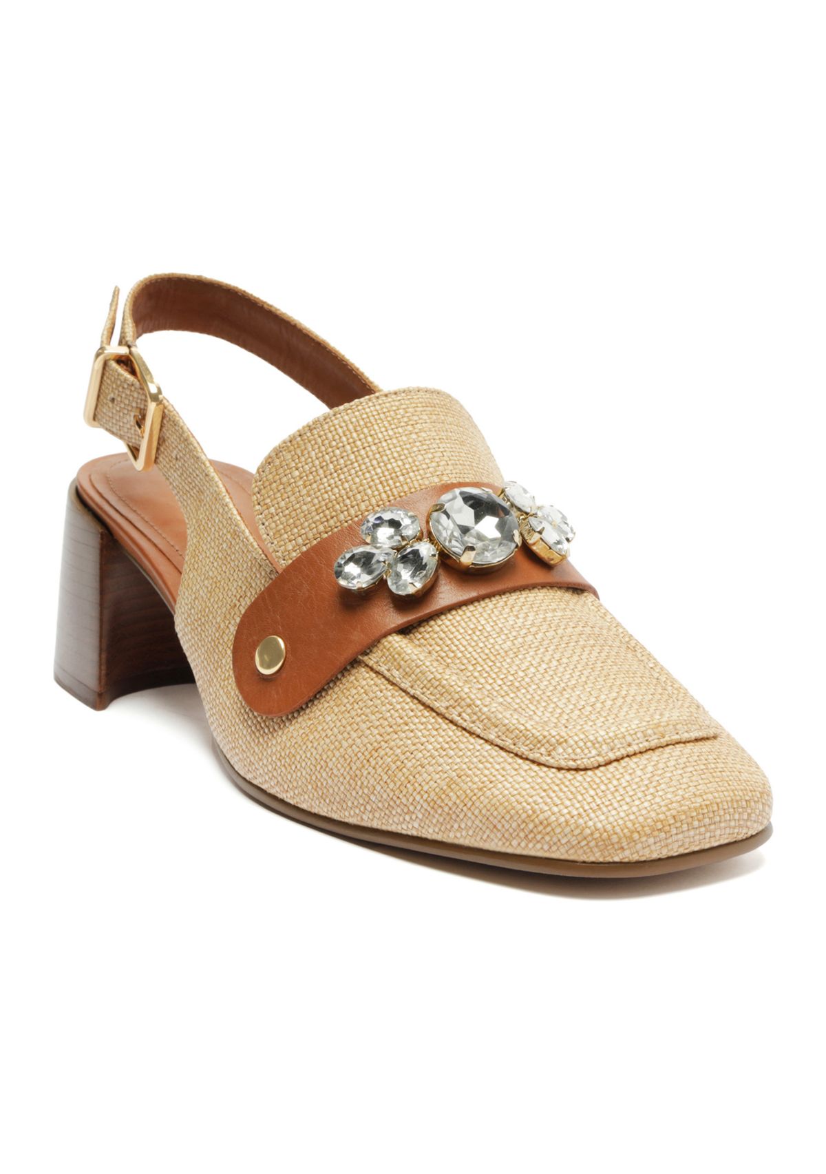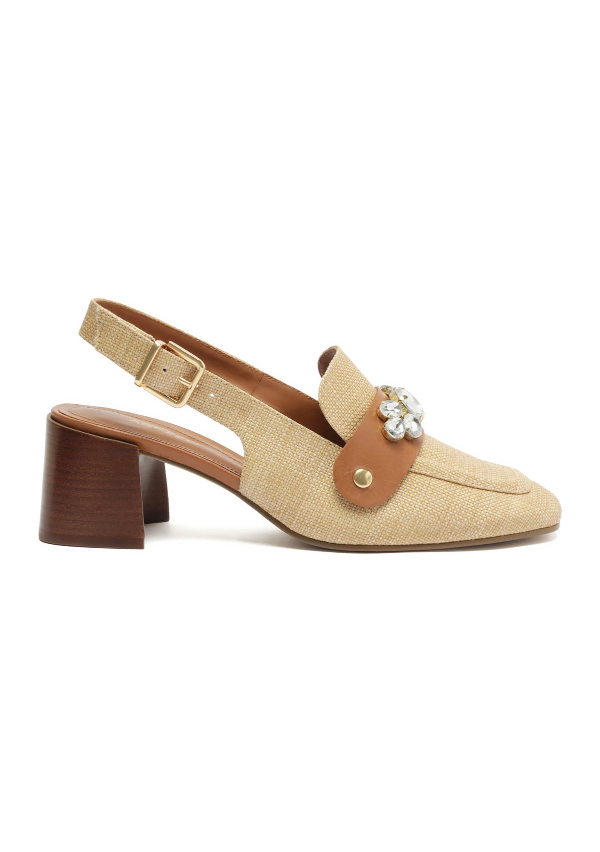 The Emery Mid-Block Pump from Arezzo is the perfect companion for all your adventures. It features a trendy square toe, a slingback strap with buckle closure, and a top strap embellished with rhinestones. Pair them with basic jeans to tailored pieces.