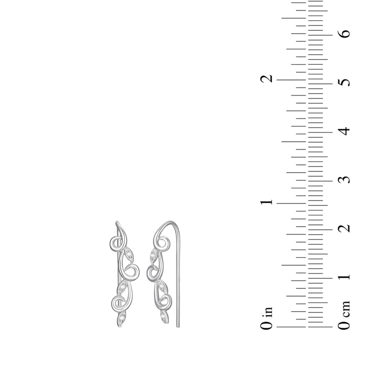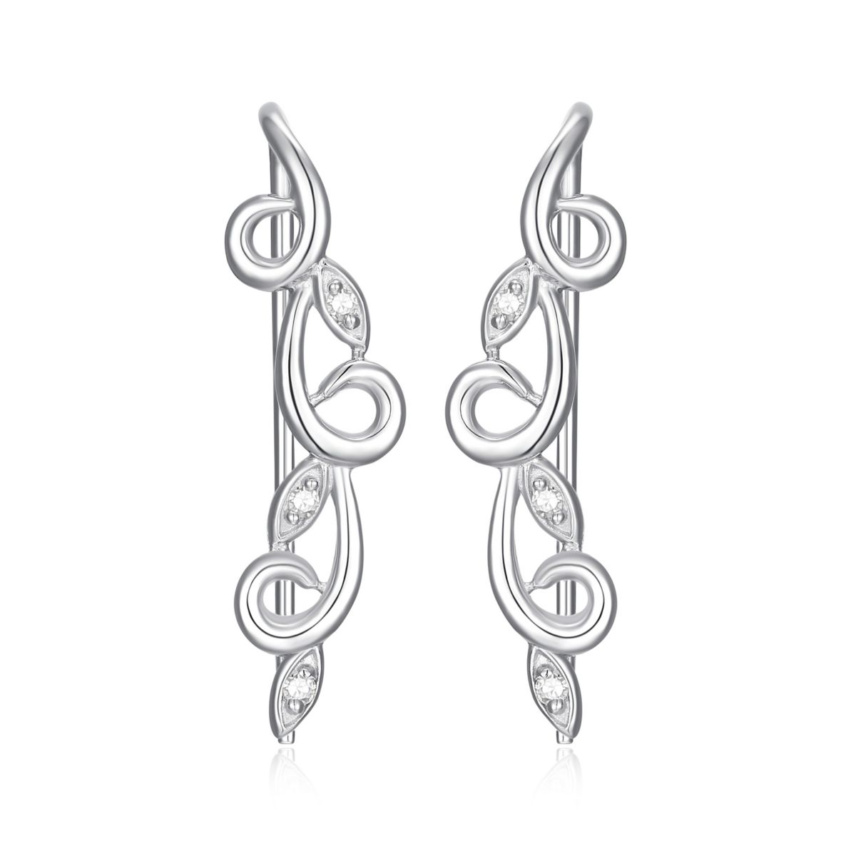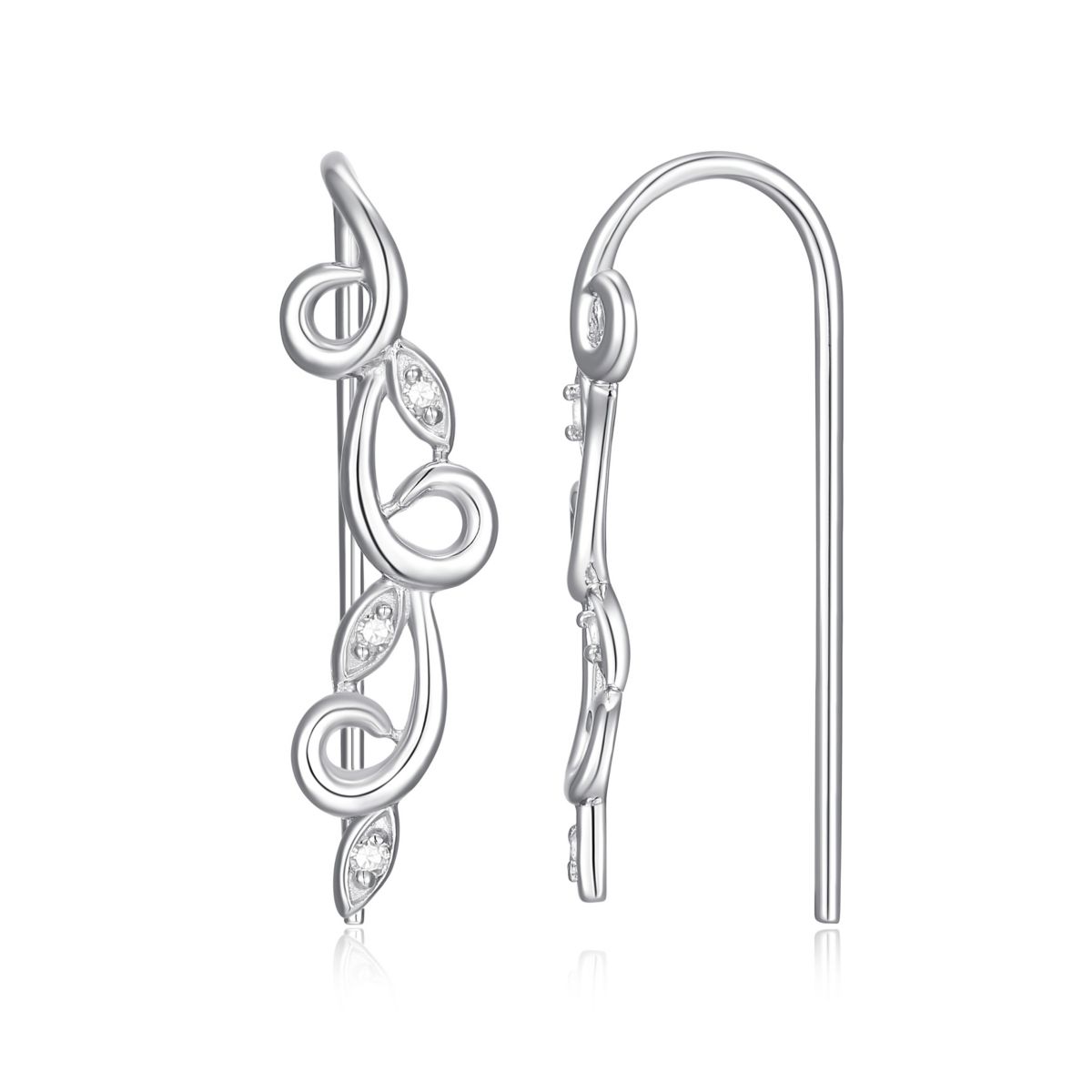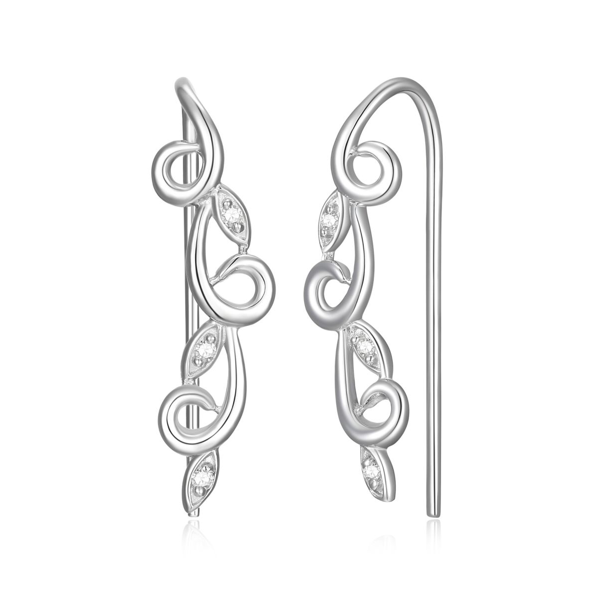 Diamond Accent Vine Swirl Crawler Earrings in Rhodium Plated Sterling Silver