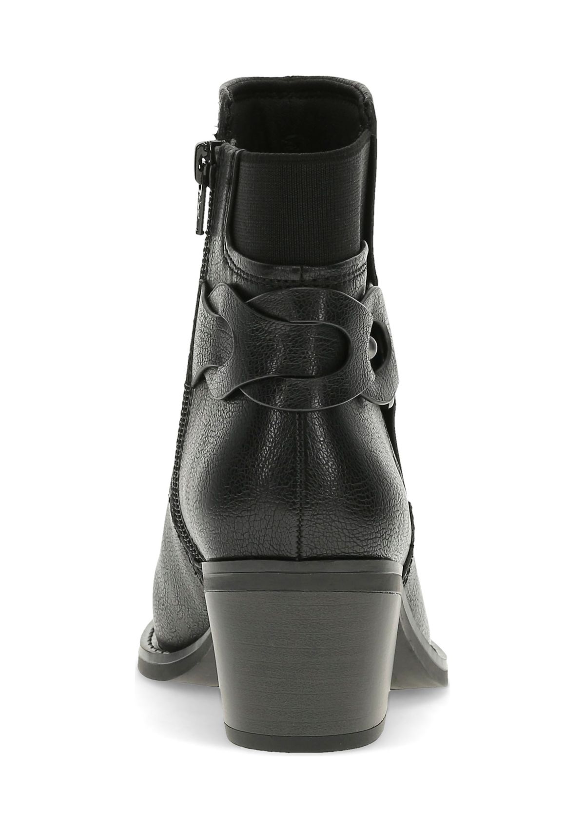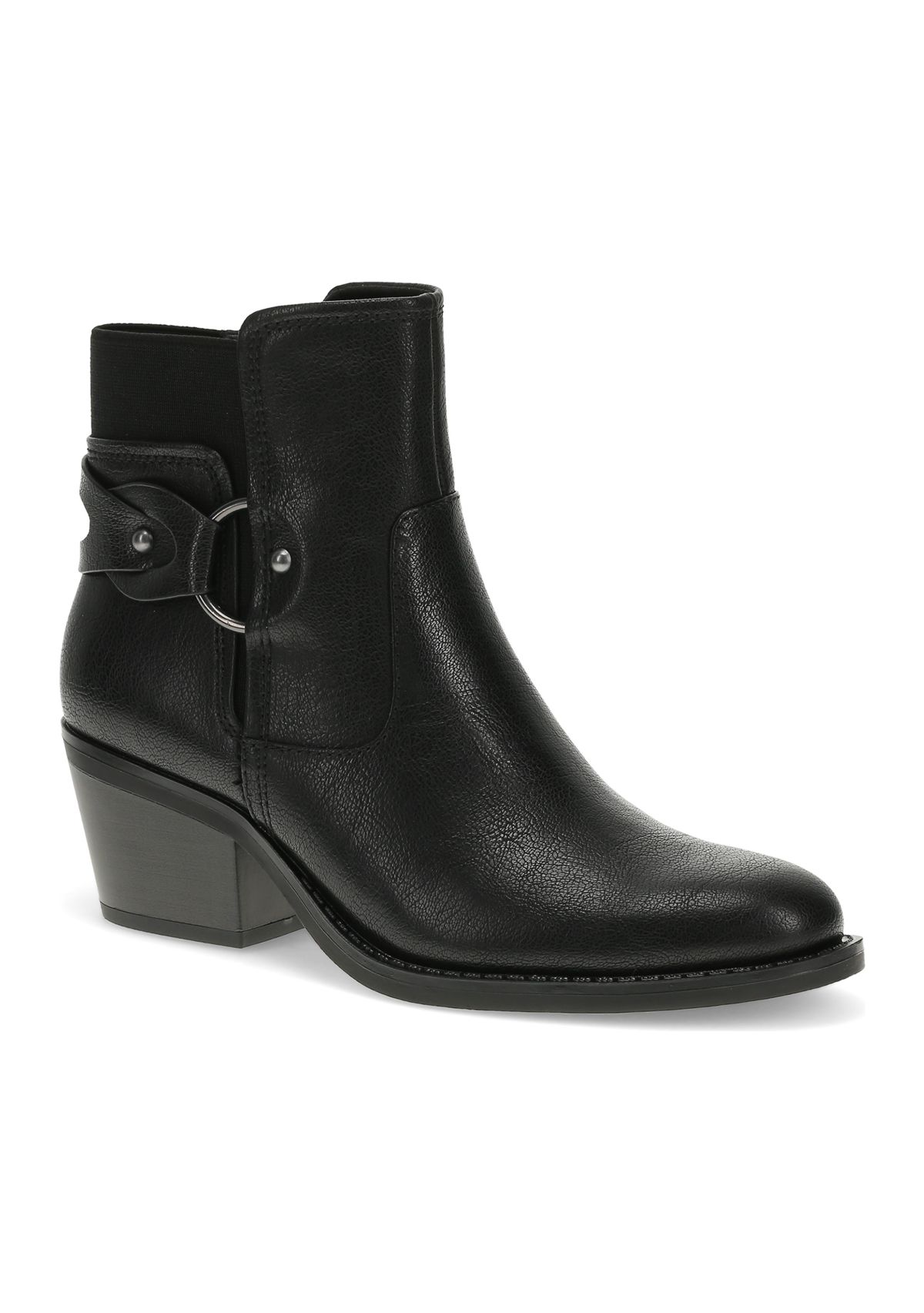 Exude style and comfort with the Baretraps Luella Bootie. Crafted with a sleek synthetic upper, this boot offers a polished, refined look that seamlessly transitions from work to weekend. The inside zipper closure ensures easy on and off, while the cushioned comfort insole and lightweight, flexible outsole provide all-day wearability. Elevate your look with the sophisticated metal ring ornament that adorns the outer side, adding a touch of modern flair. The almond toe and block heel silhouette create a versatile, flattering shape that complements a variety of outfits. Whether you're navigating the city streets or running errands, the Baretraps Luella Bootie keeps you supported and stylish.