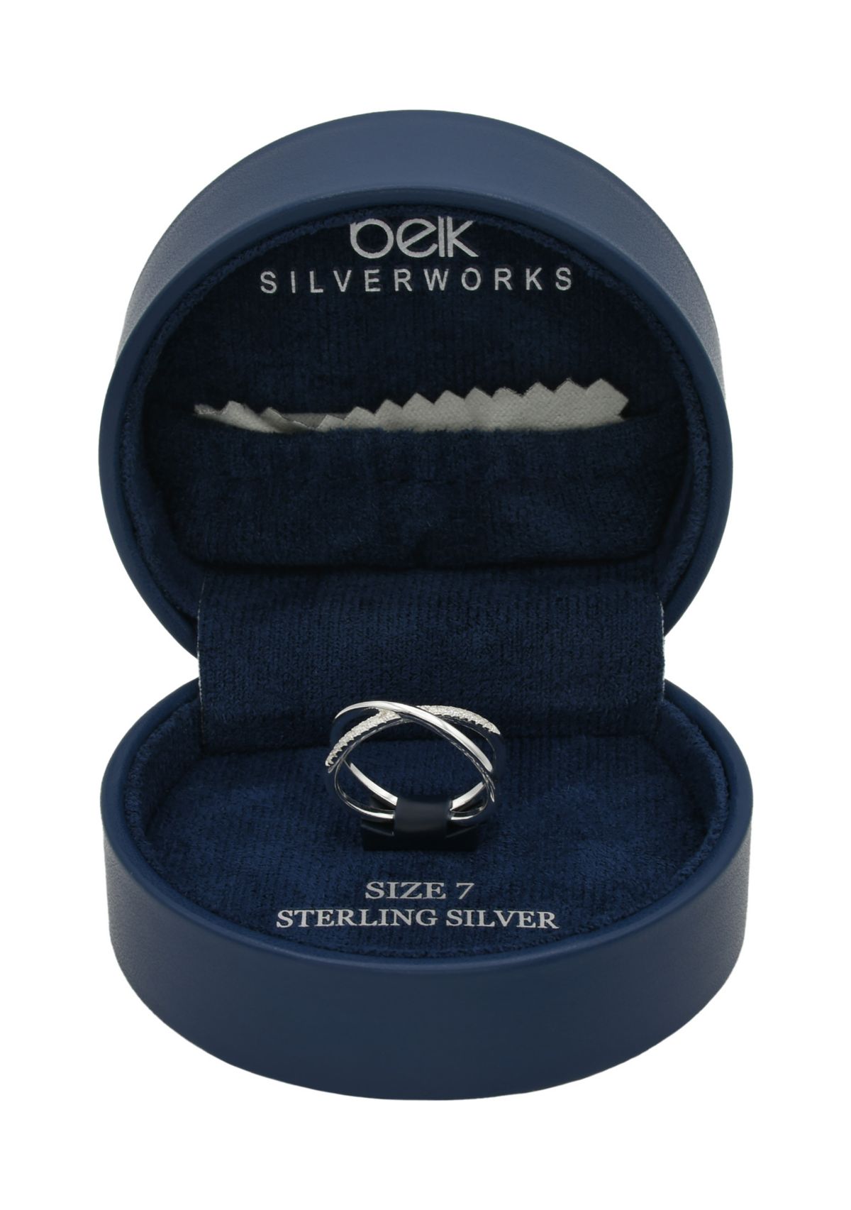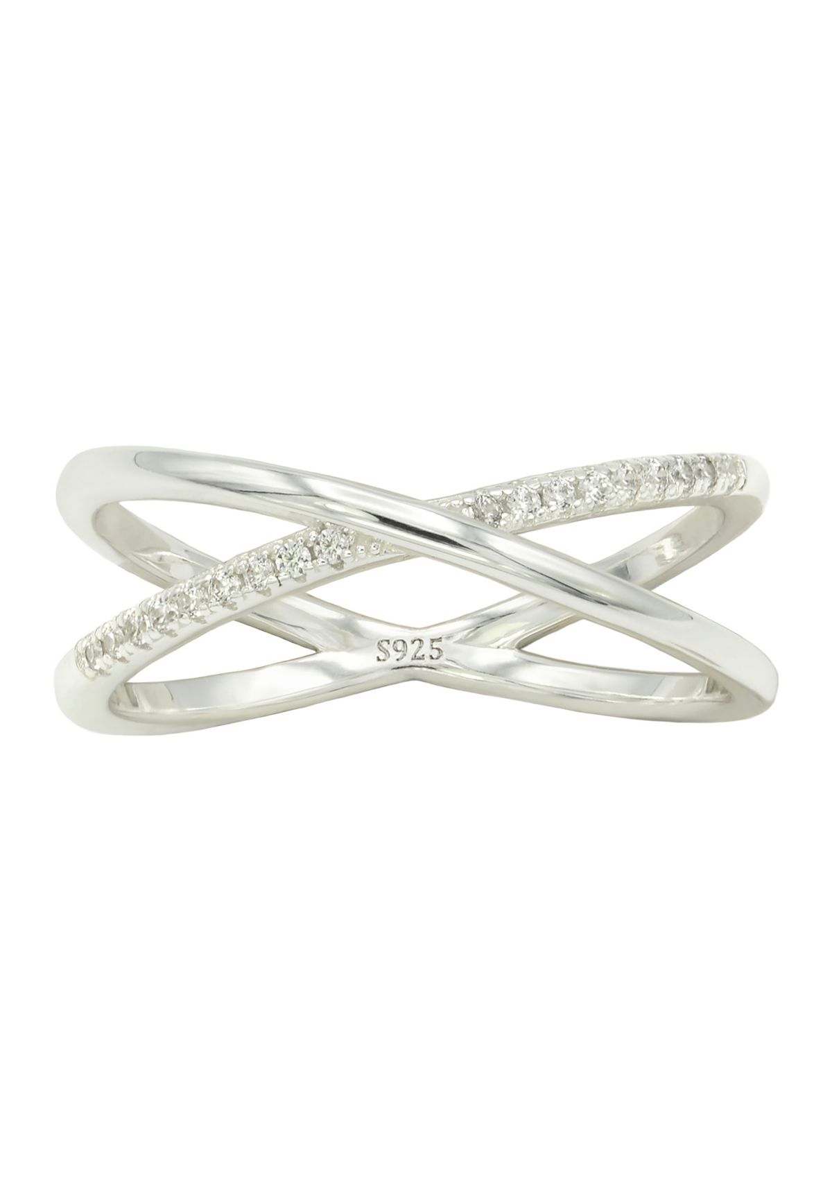 Lab Grown Pavé Cubic Zirconia Open X Ring in Sterling Silver