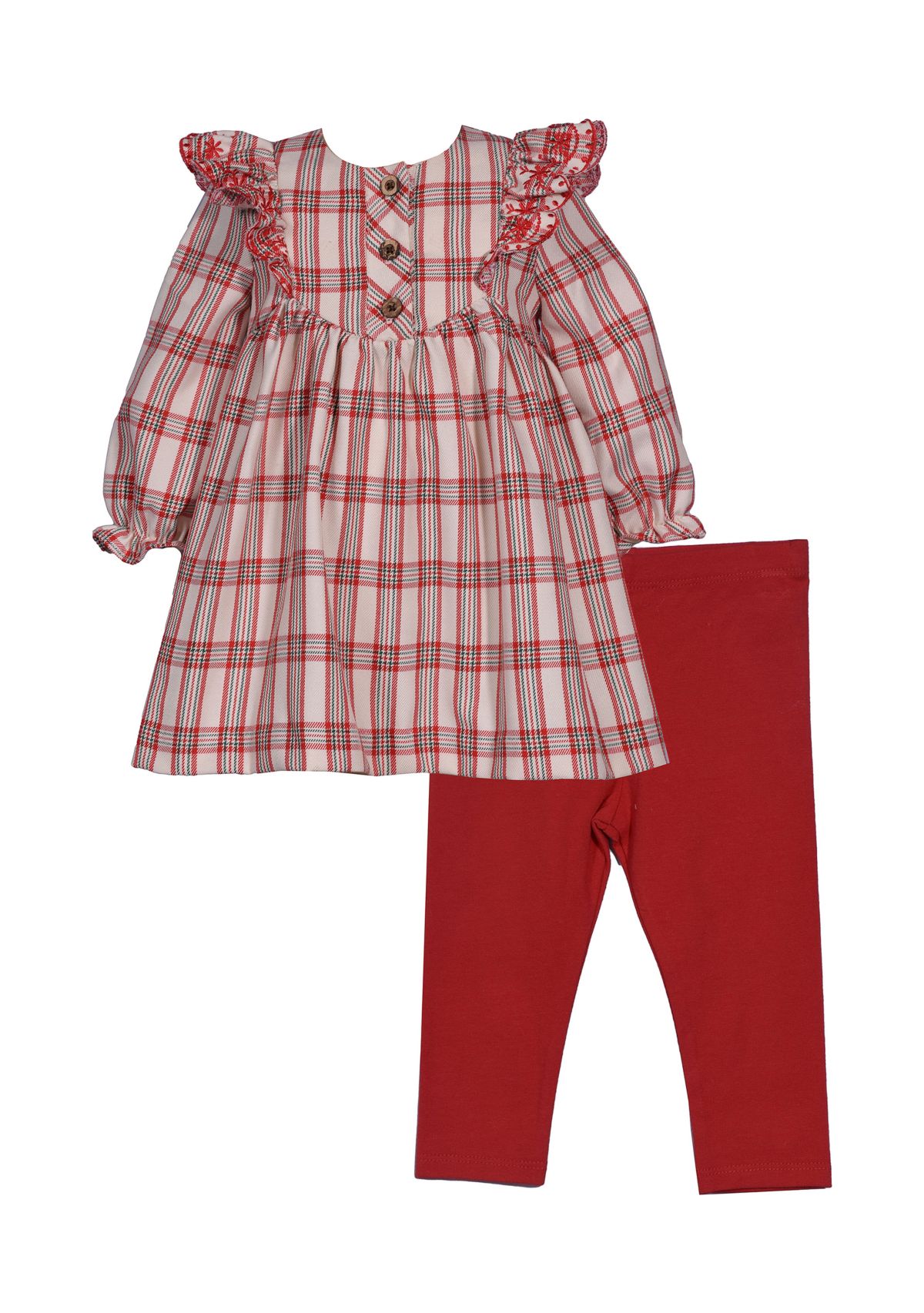 Get her ready in a flash with this adorable plaid set from Bonnie Jean.