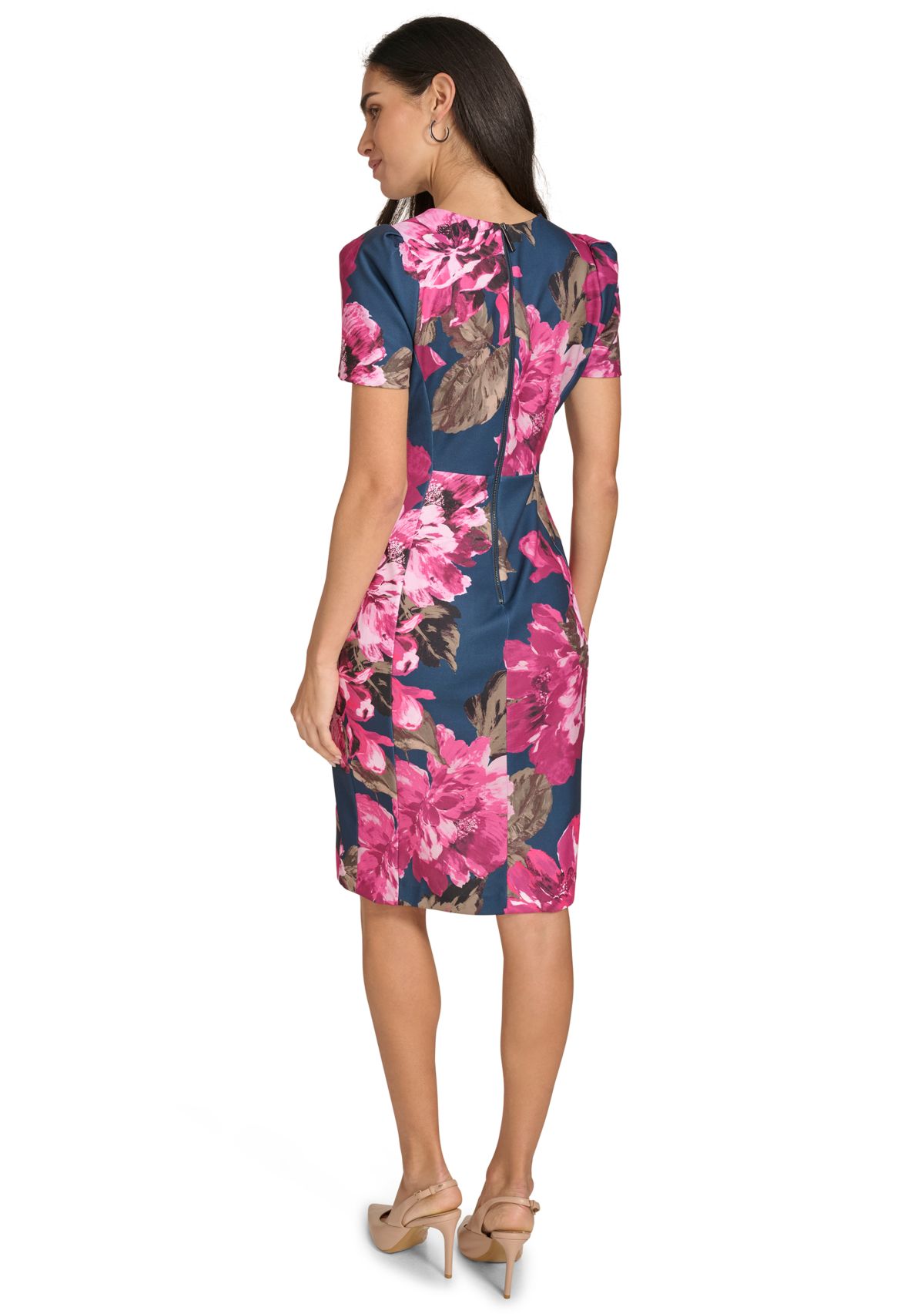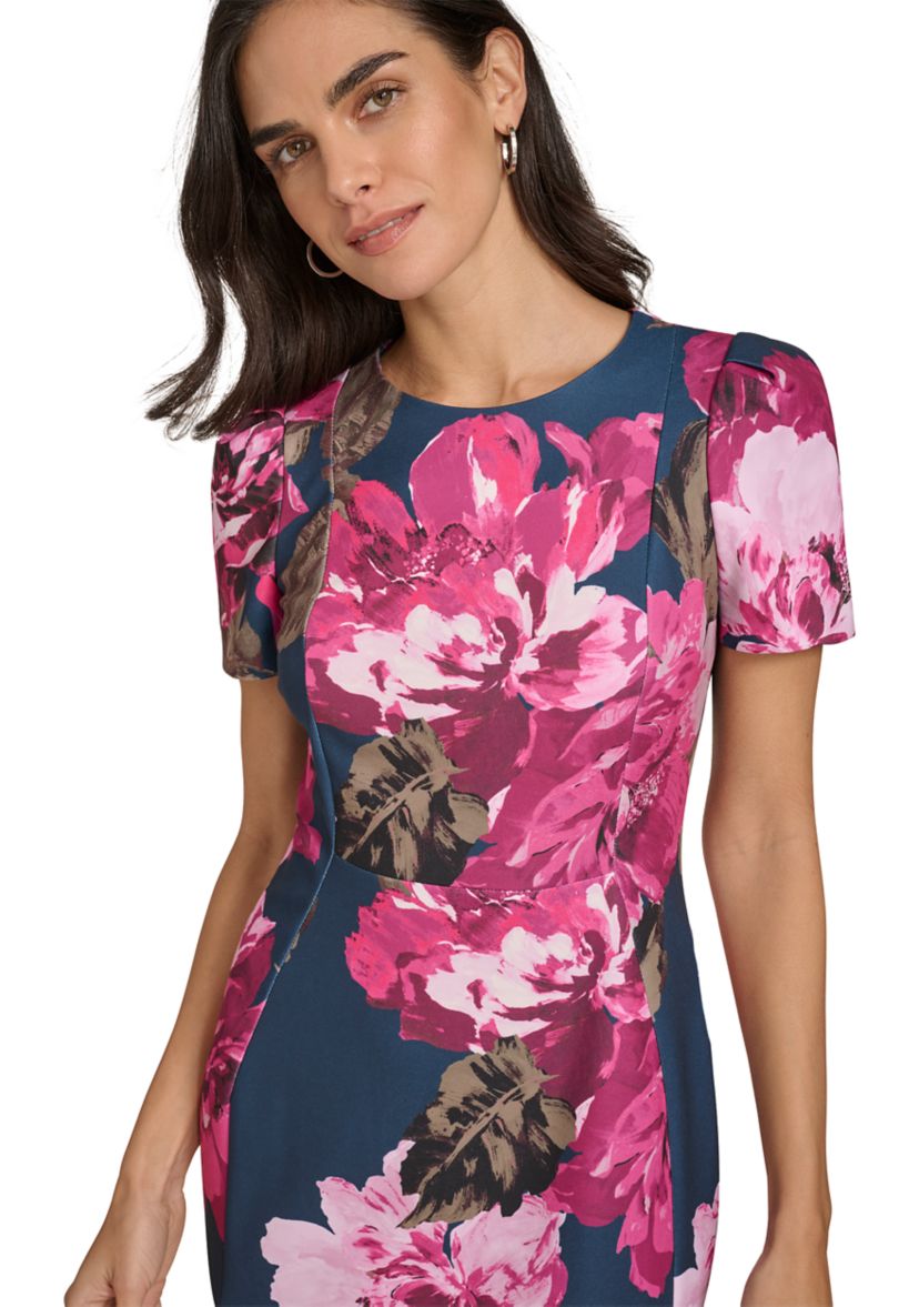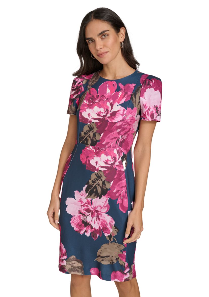 Calvin Klein Women's Short Sleeve Crew Neck Floral Print Sheath Dress