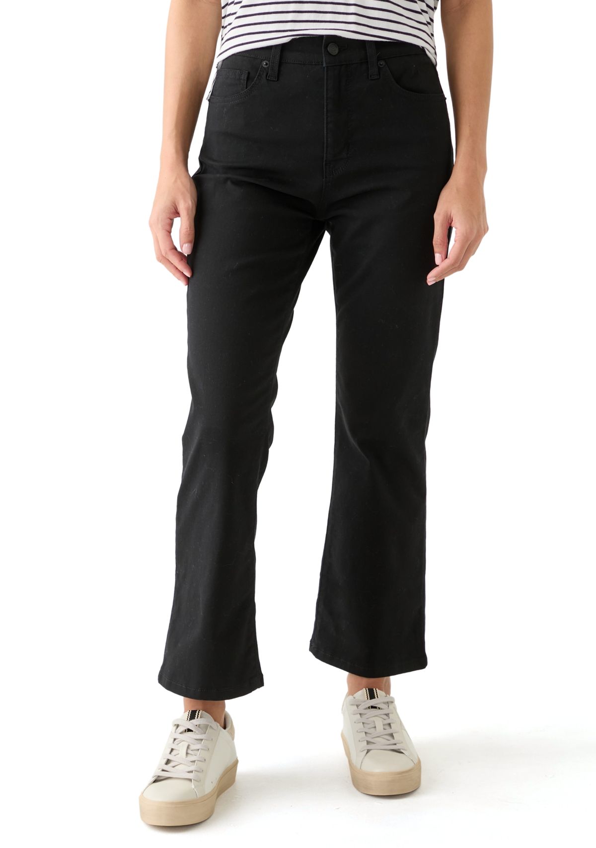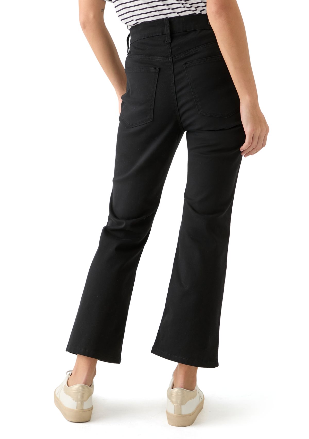 This pair of high-rise kick-flare ankle jeans is a classic style with a modern twist. Crafted from a comfortable blend of polyester, cotton, and spandex, these jeans offer a flattering fit with a flared leg and a 25.5-inch inseam. The zip closure and belt loops ensure a secure and adjustable fit, while the five classic pockets provide ample storage space. These versatile jeans can be dressed up or down for any occasion, making them a must-have addition to your wardrobe.