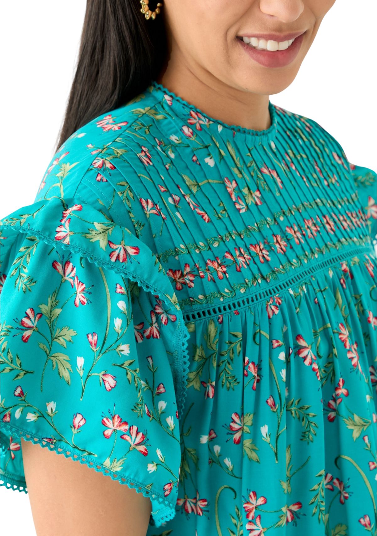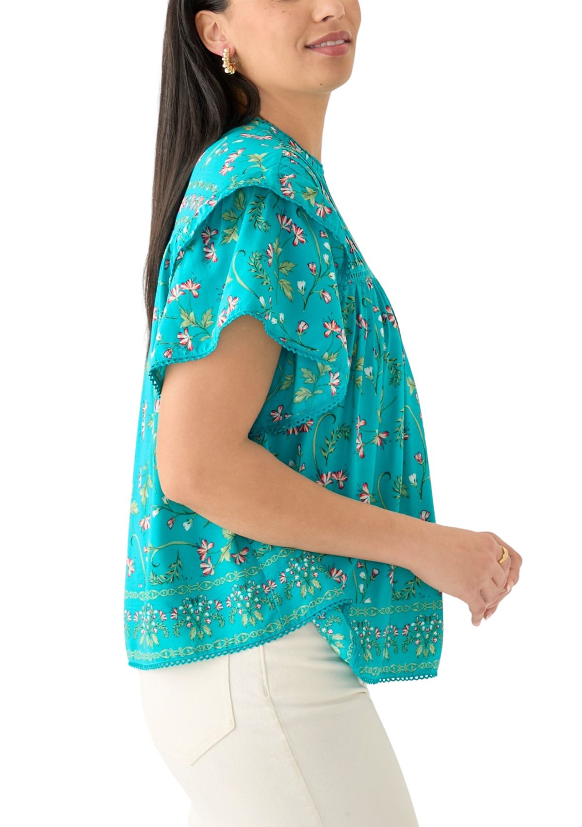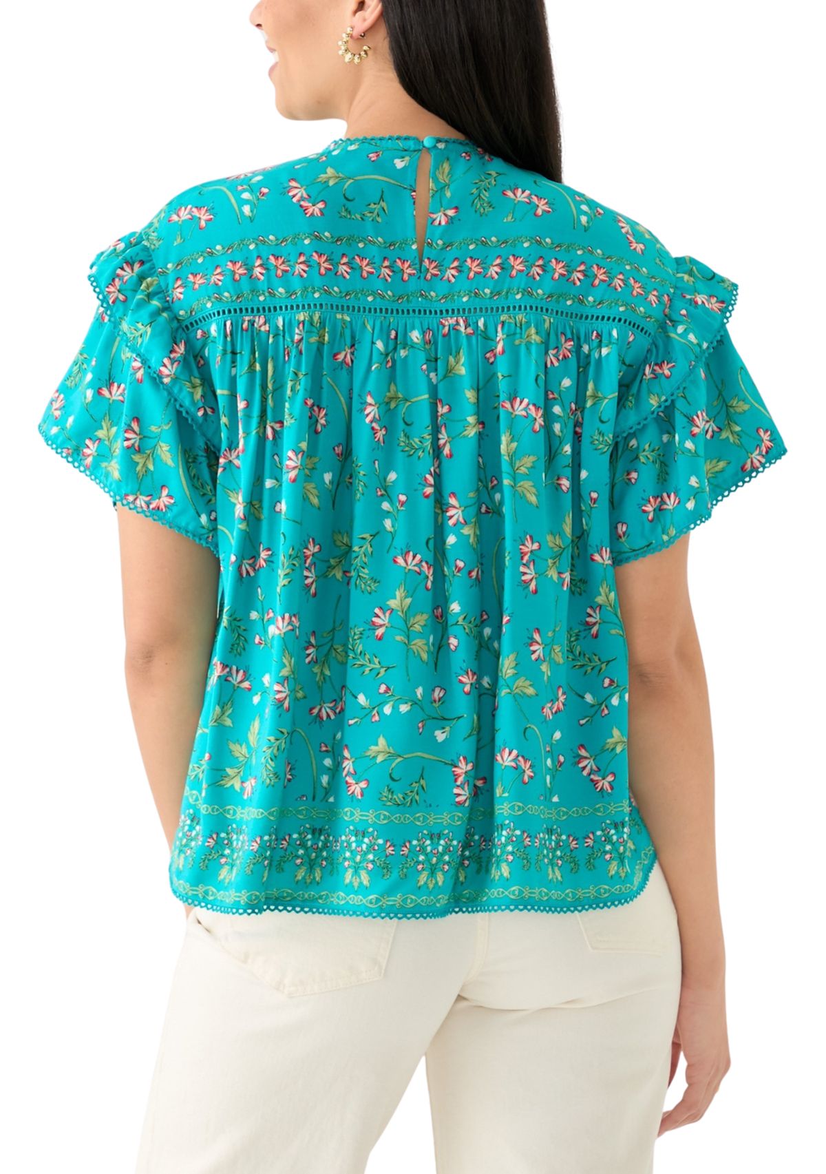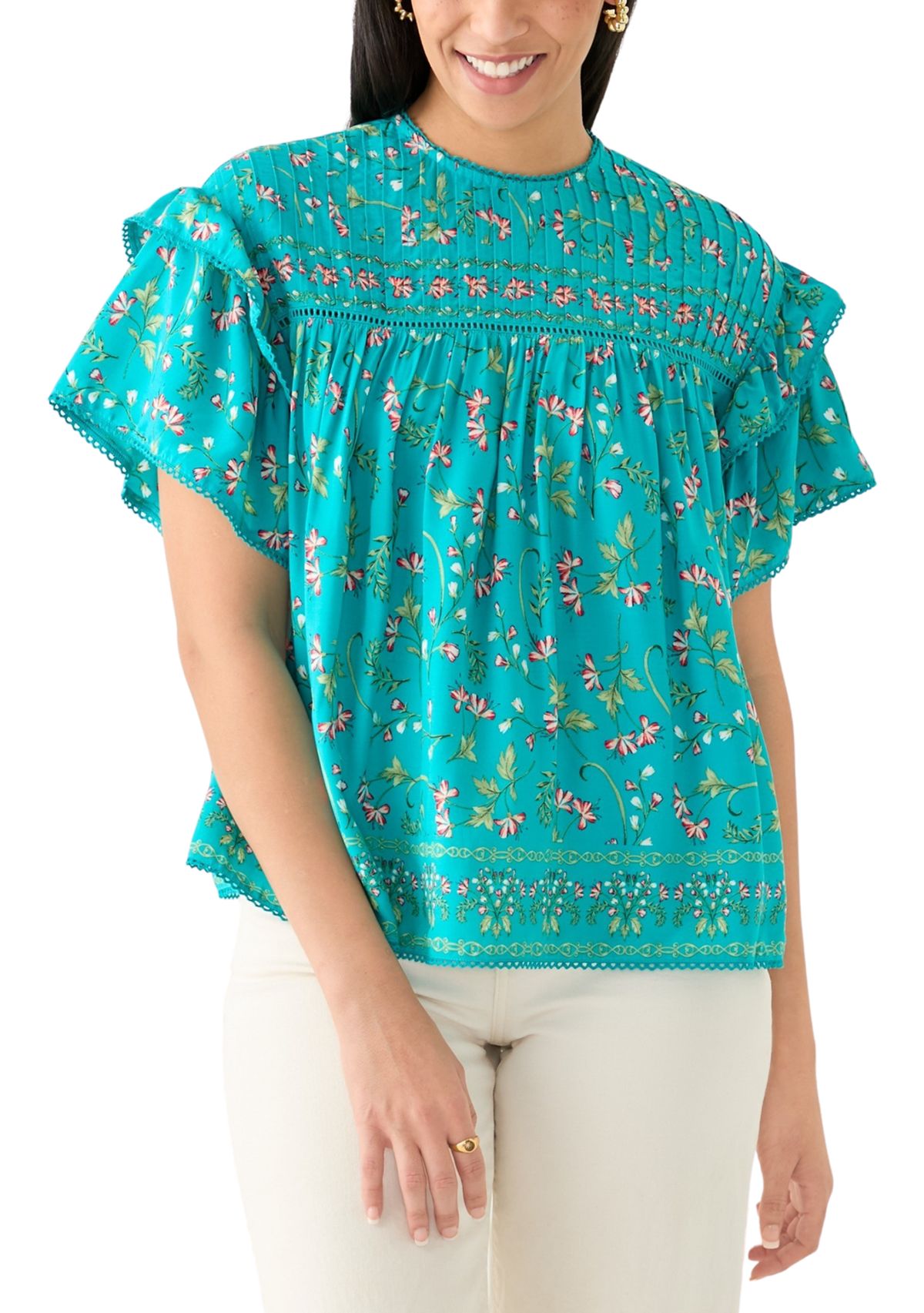 Ruffled sleeves add feminine charm to this printed top from Crown & Ivy™.