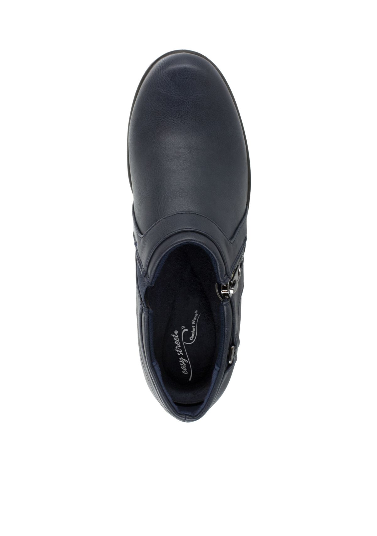 Because you look your best when you feel good, the Devo by Easy Street features an Easy Motion insole that sets new standards in comfort. Detailed with an exposed side zipper, rugged metal connector and inside gore that completes the look of this modern casual.