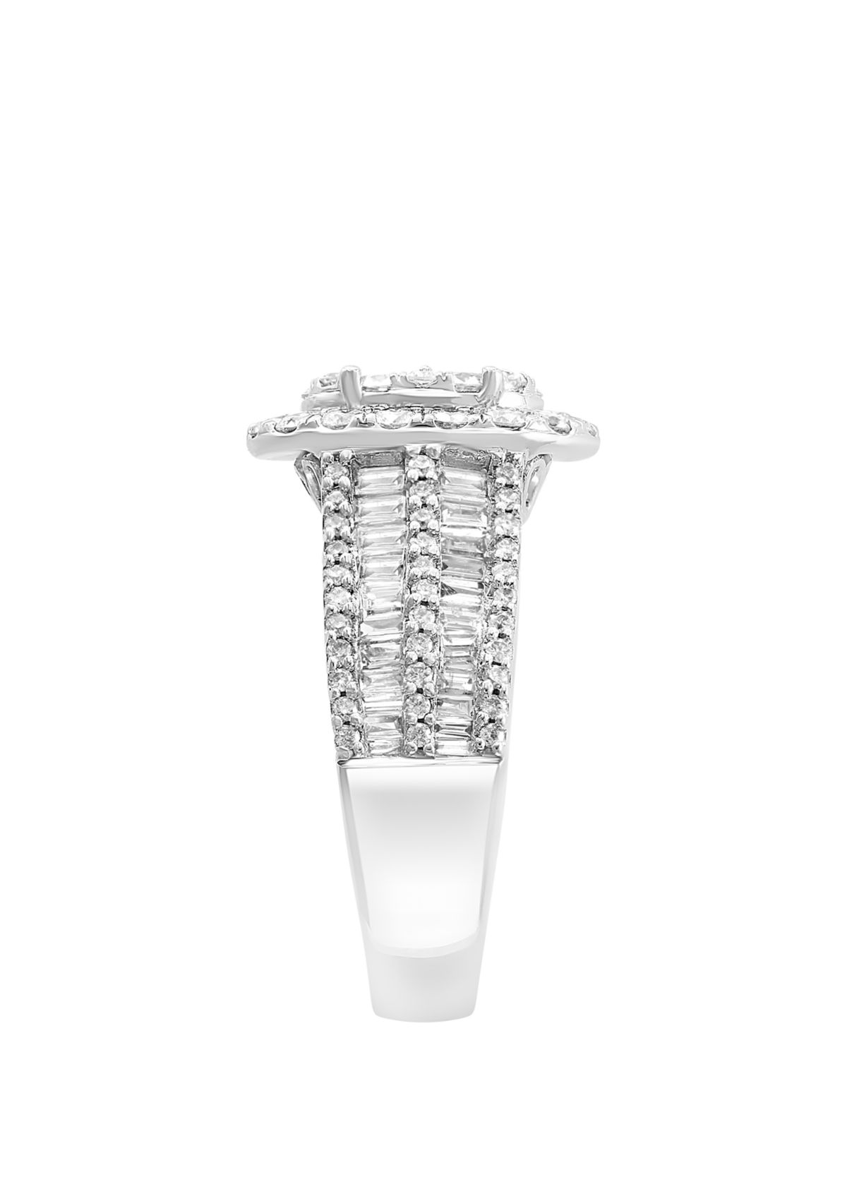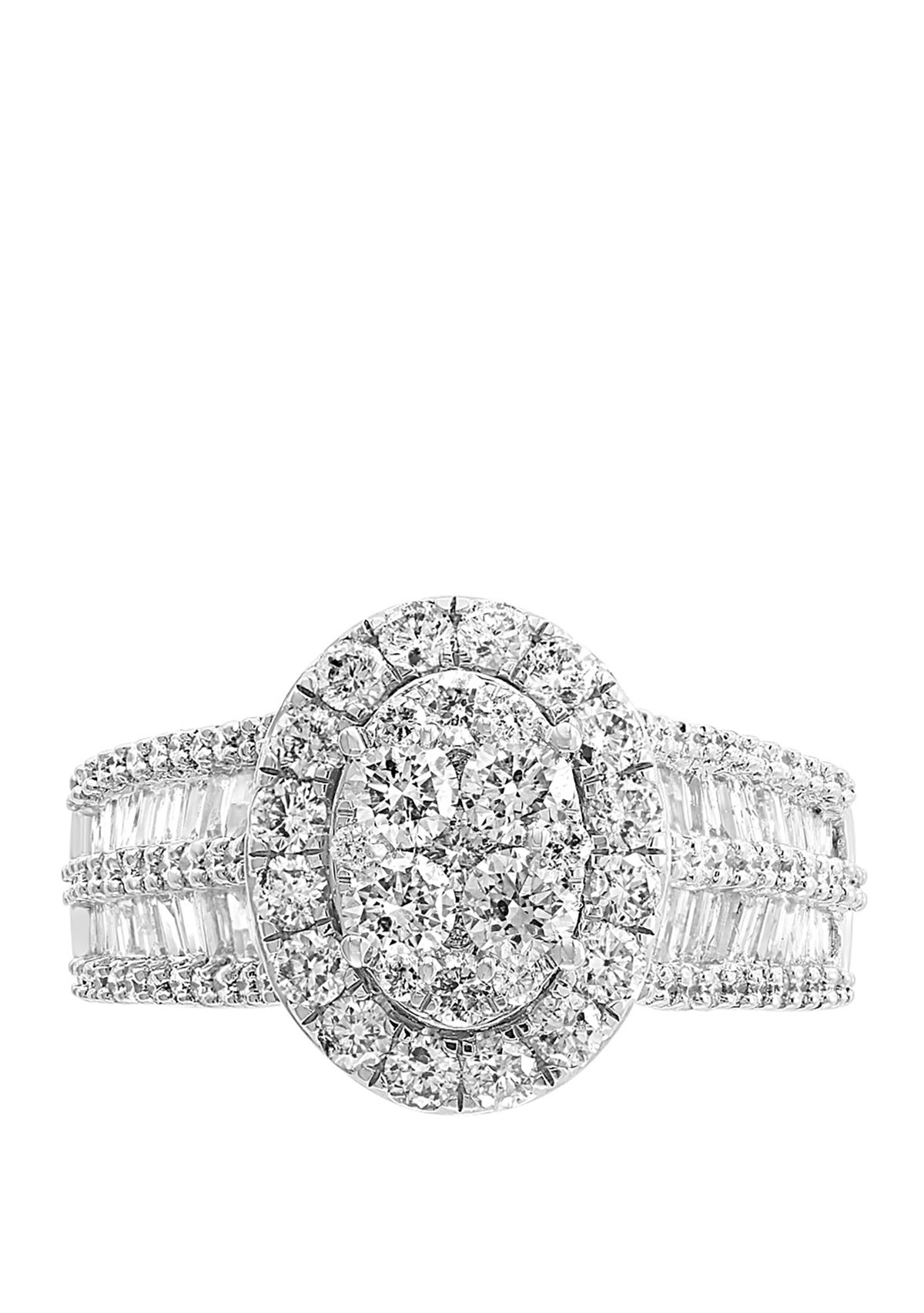 Featuring a mix of round and baguette 1.94 ct. t.w. diamonds, this dazzling cluster ring from Effy® is set in polished 14k white gold.