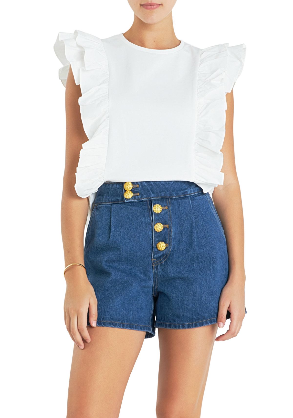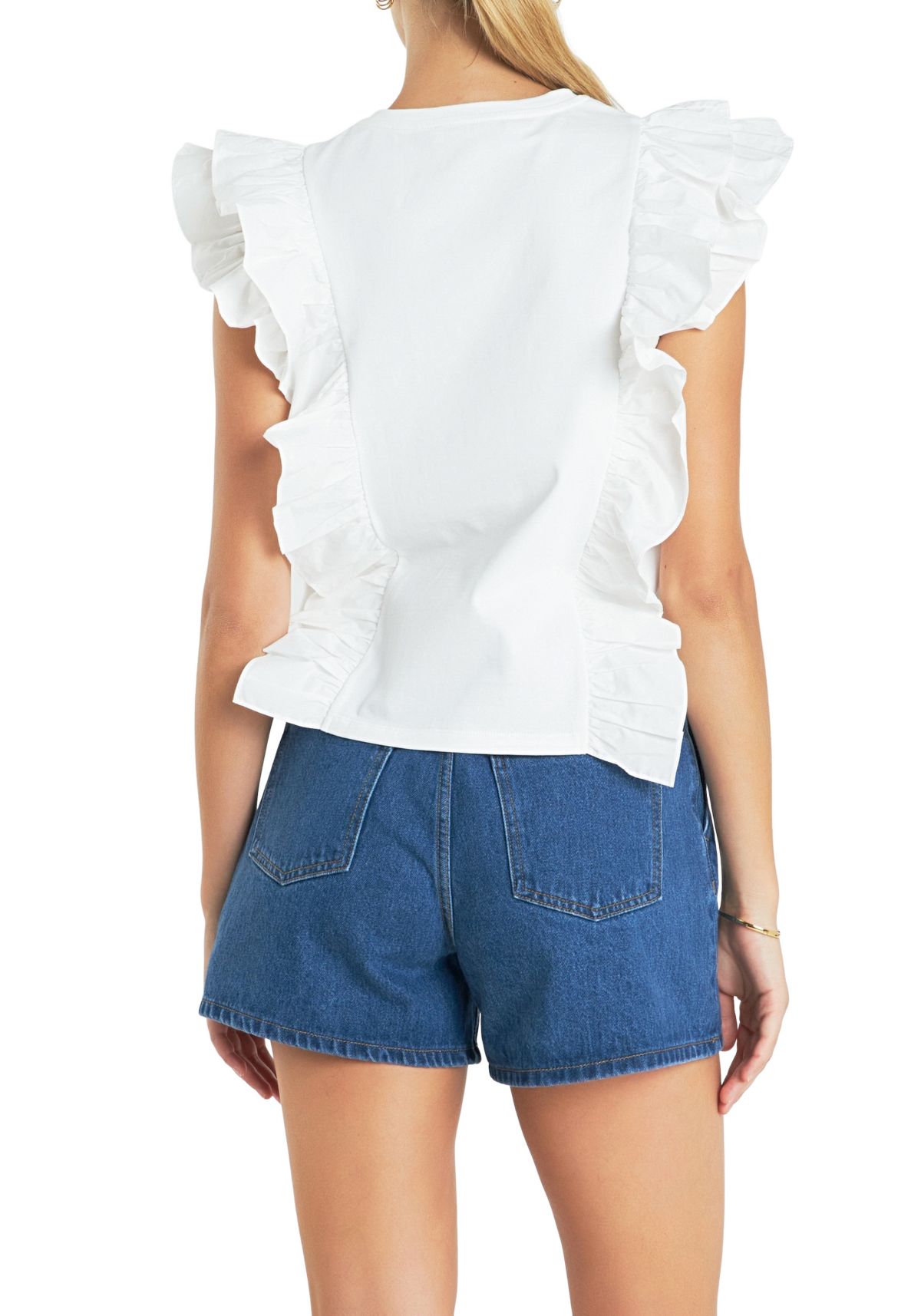 ENGLISH FACTORY Poplin Ruffle Detail Sleeveless Top