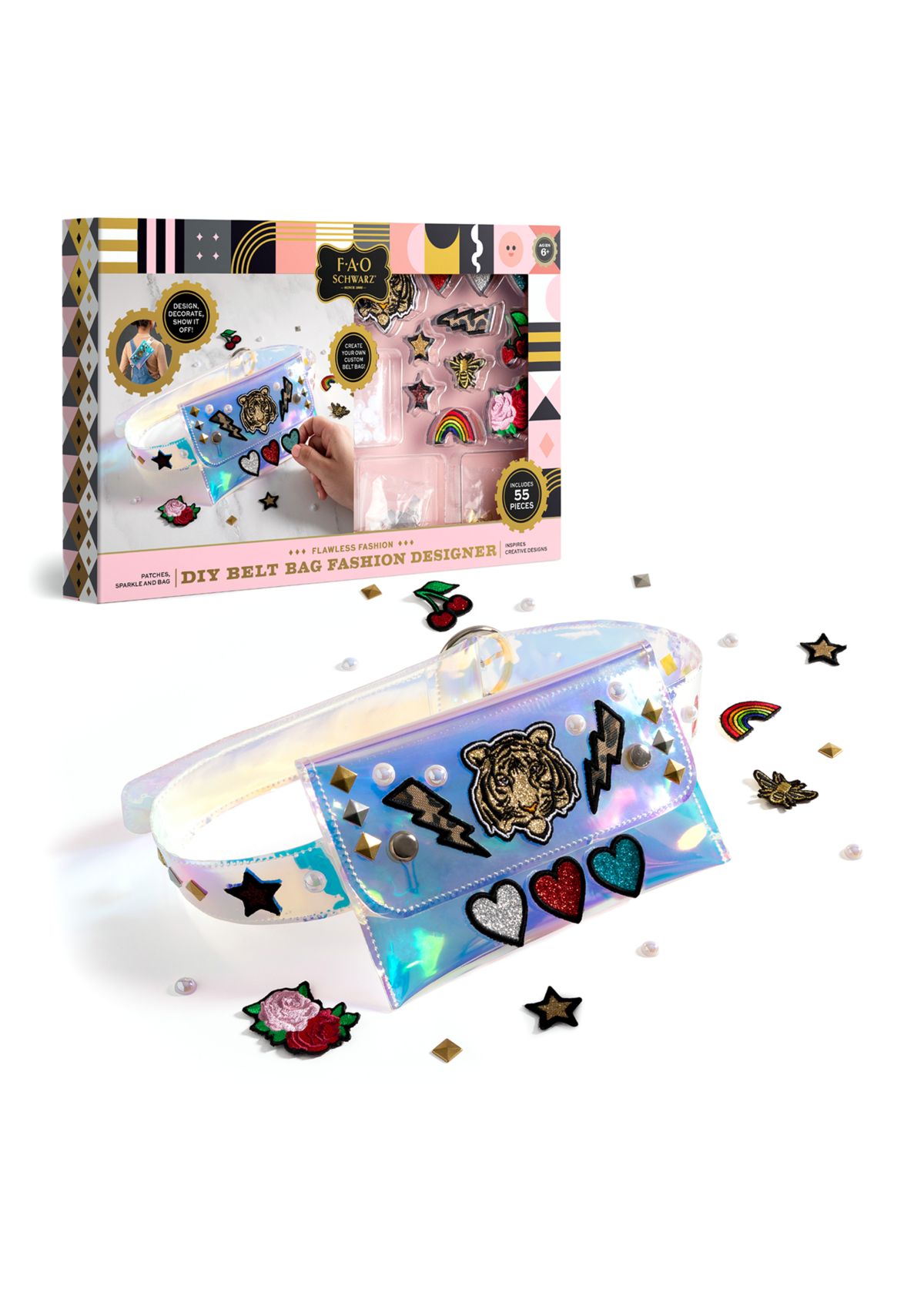 FAO Schwarz Girls DIY Belt Bag Rhinestone Gold and Silver Stud Craft Kit with Embroidered Patches