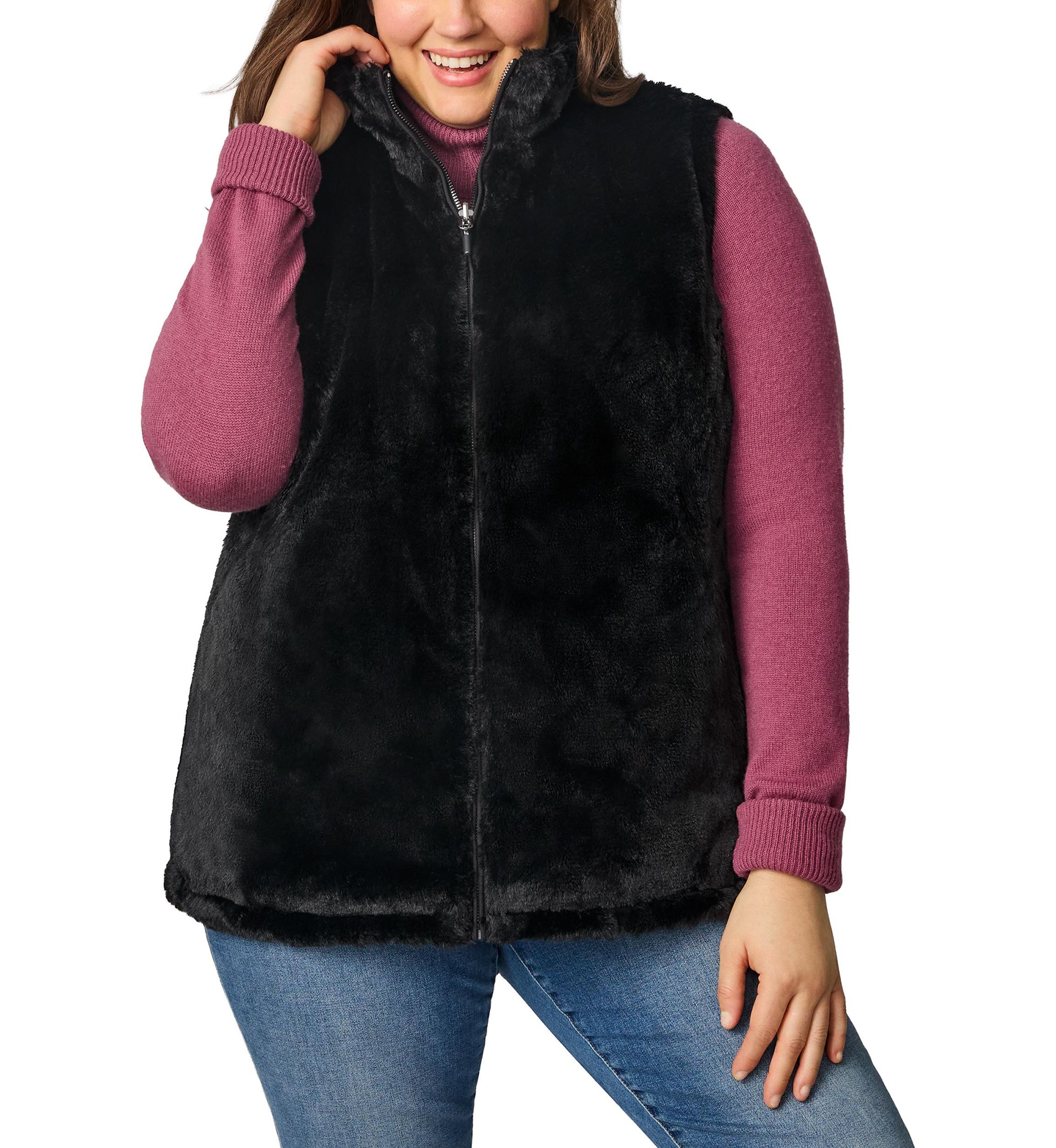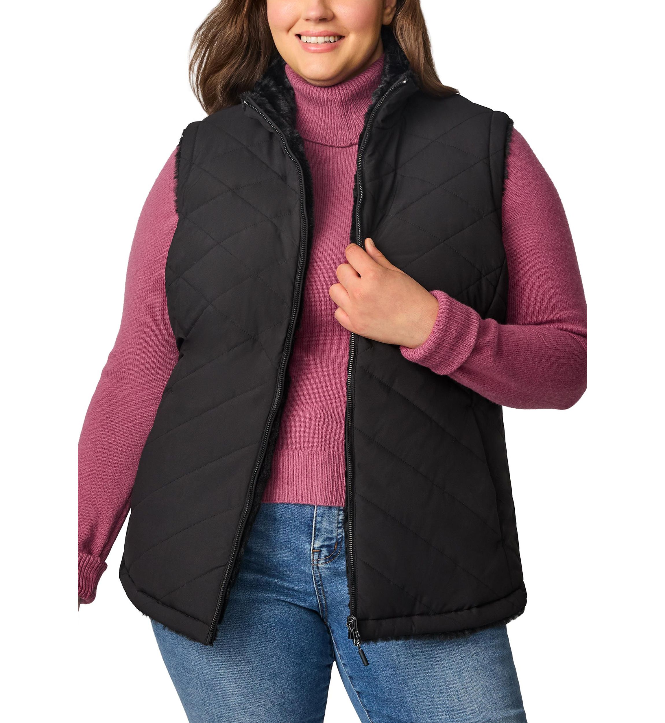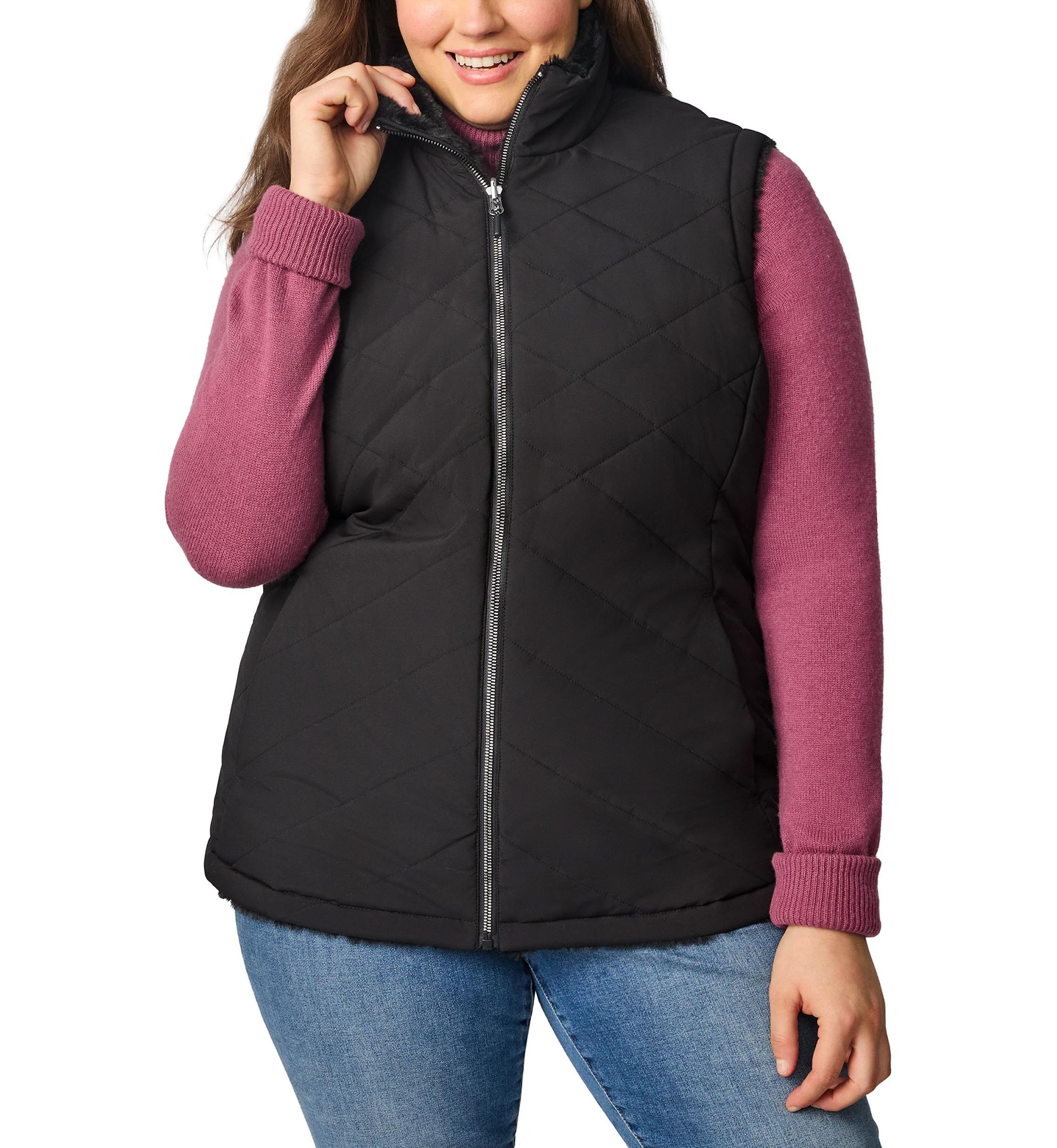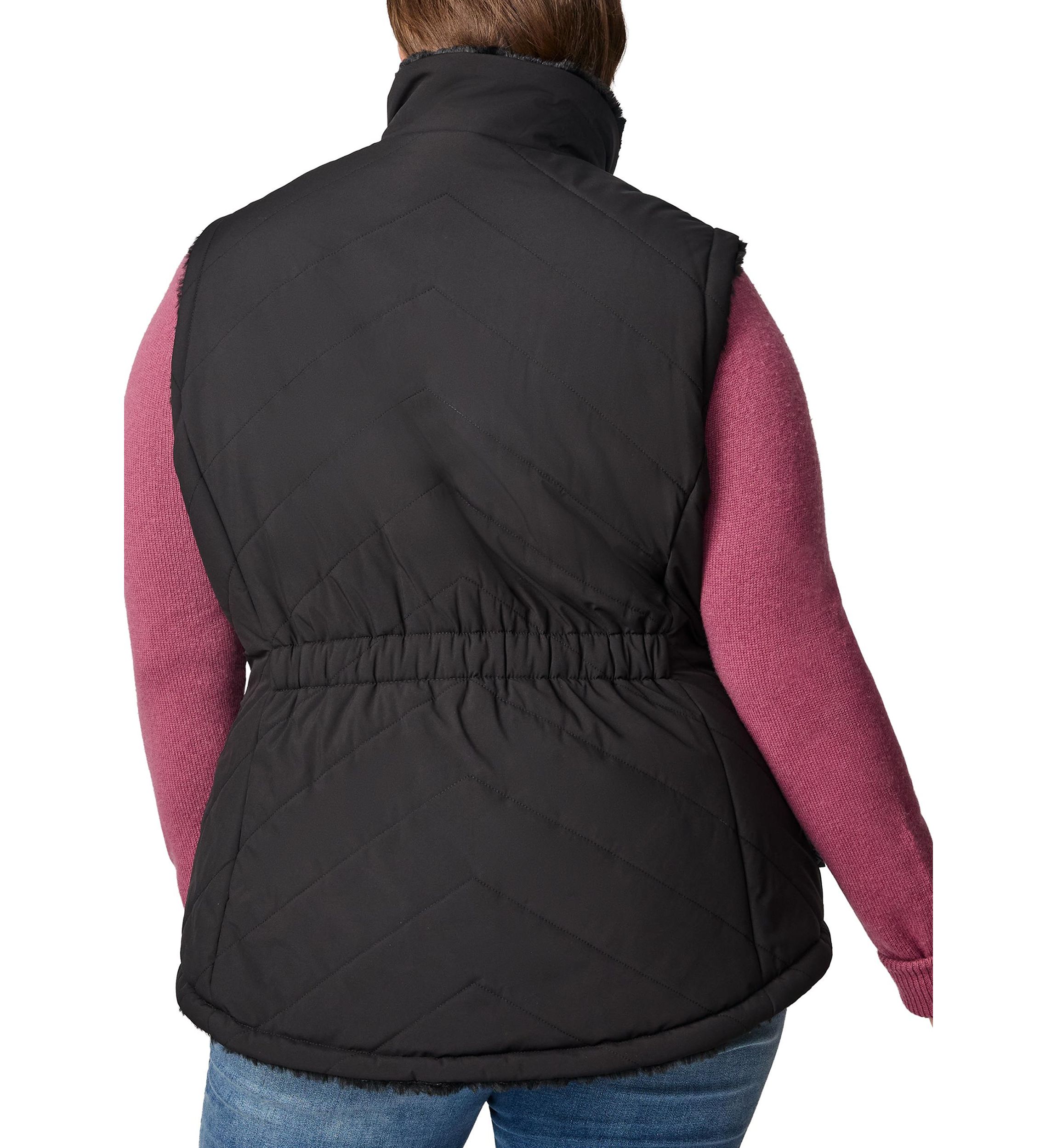 Experience ultimate versatility with this reversible vest, offering two stylish looks in one. Designed for warmth, it features recycled REPREVE® poly fill, ensuring you stay cozy in any weather. The mock neck collar and zip closure provide added protection and a sleek silhouette. With a 29-inch length and convenient pockets, this sleeveless vest is perfect for layering and staying comfortable.
