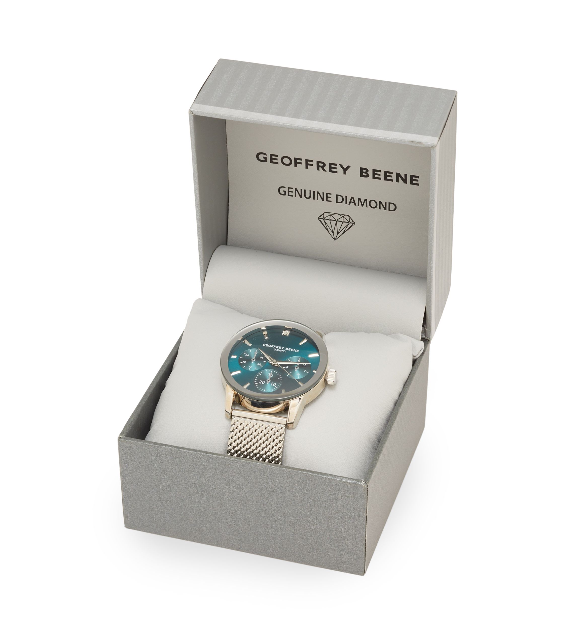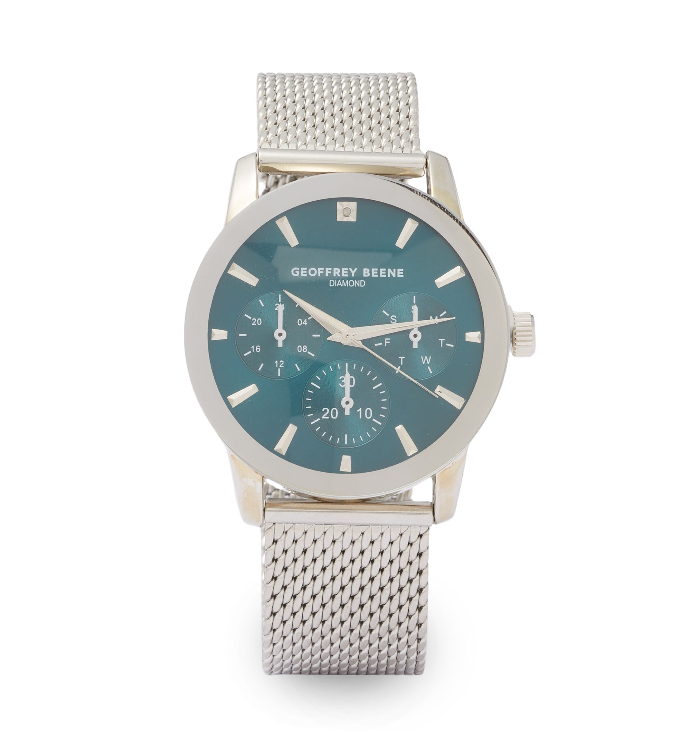 Geoffrey Beene Chrome Mesh Band Teal Face Watch