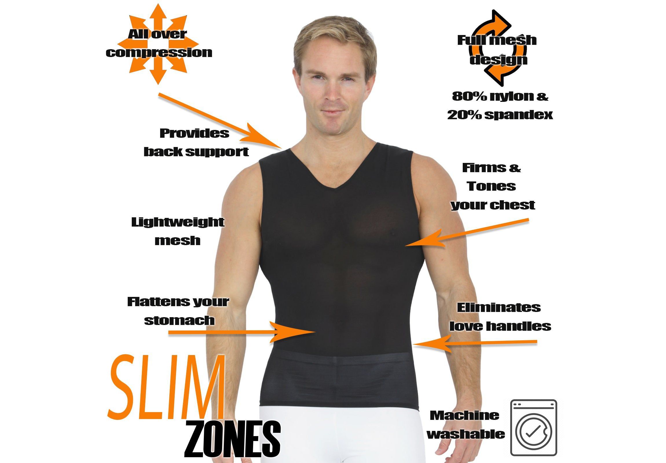Men's power mesh compression sleeveless V-neck shirt is one of the latest additions to our collection. The Insta Slim full mesh design allows ample airflow and breathability within the garment without any loss of compression. Sleeveless V-neck tank features flatlock seams to reduce chafing for better comfort while in use. The full mesh design is both lightweight and sturdy for daily wear and is discreet while under clothing. This full mesh V-neck is designed to eliminates love handles, offer great back and posture support plus firm, and tone your chest while keeping you cool. Wear as base-layer or alone for a different look and feel.