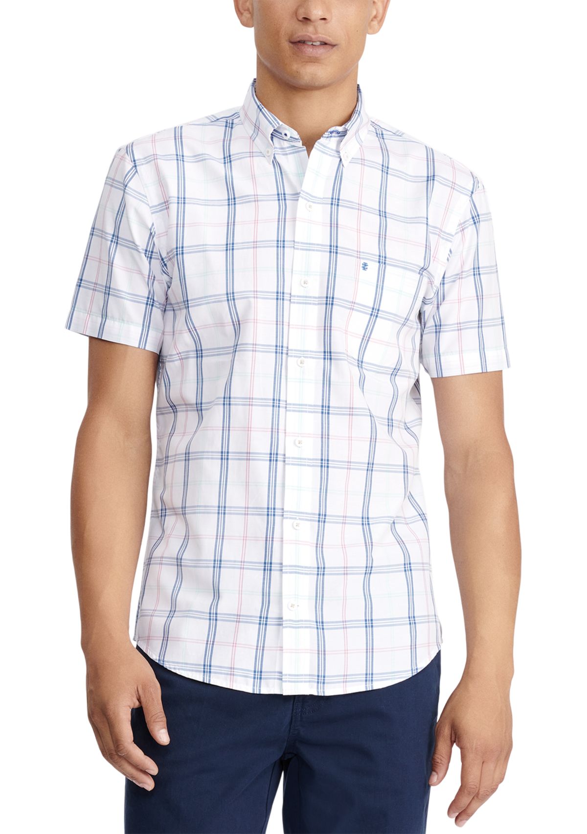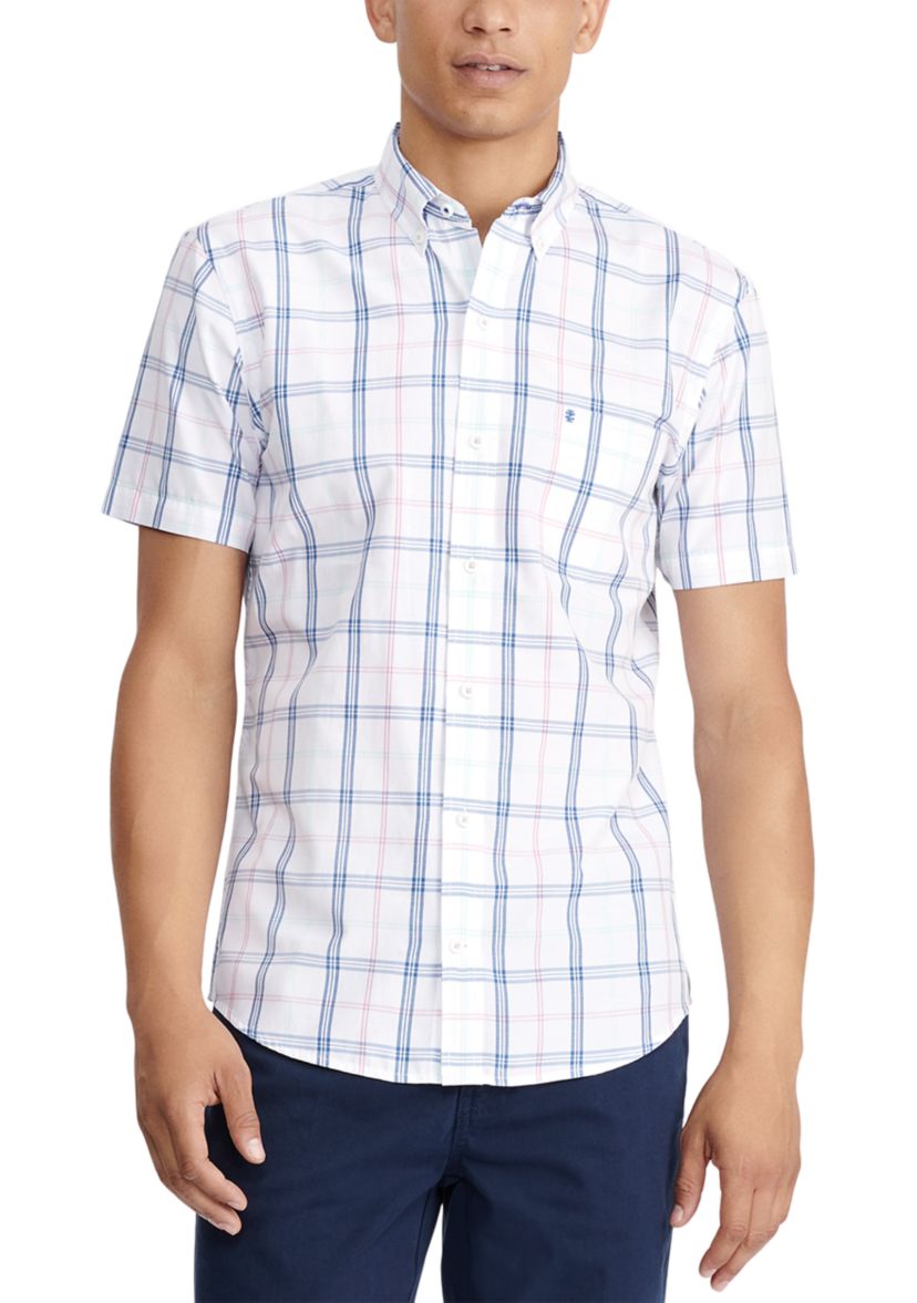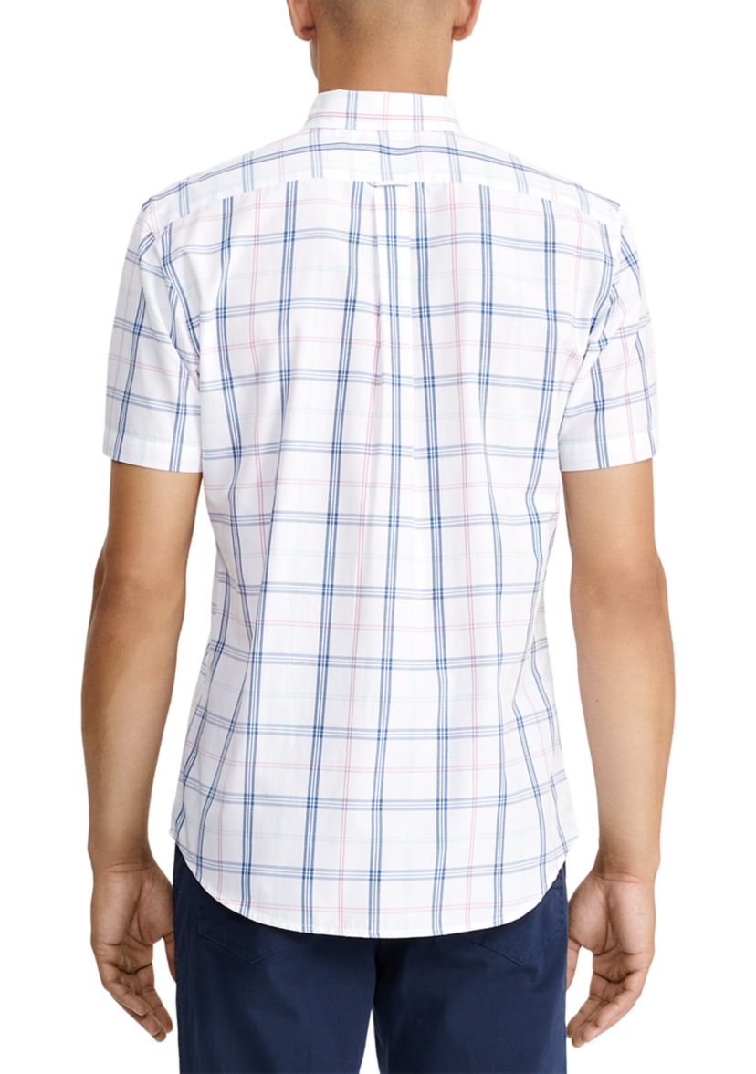 Casually cool and completely comfortable, this shirt from IZOD is featured in an athletic cut in a lightweight cotton blend that’s both cooling and breathable. This short-sleeve, button-down makes warm-weather styling a breeze.