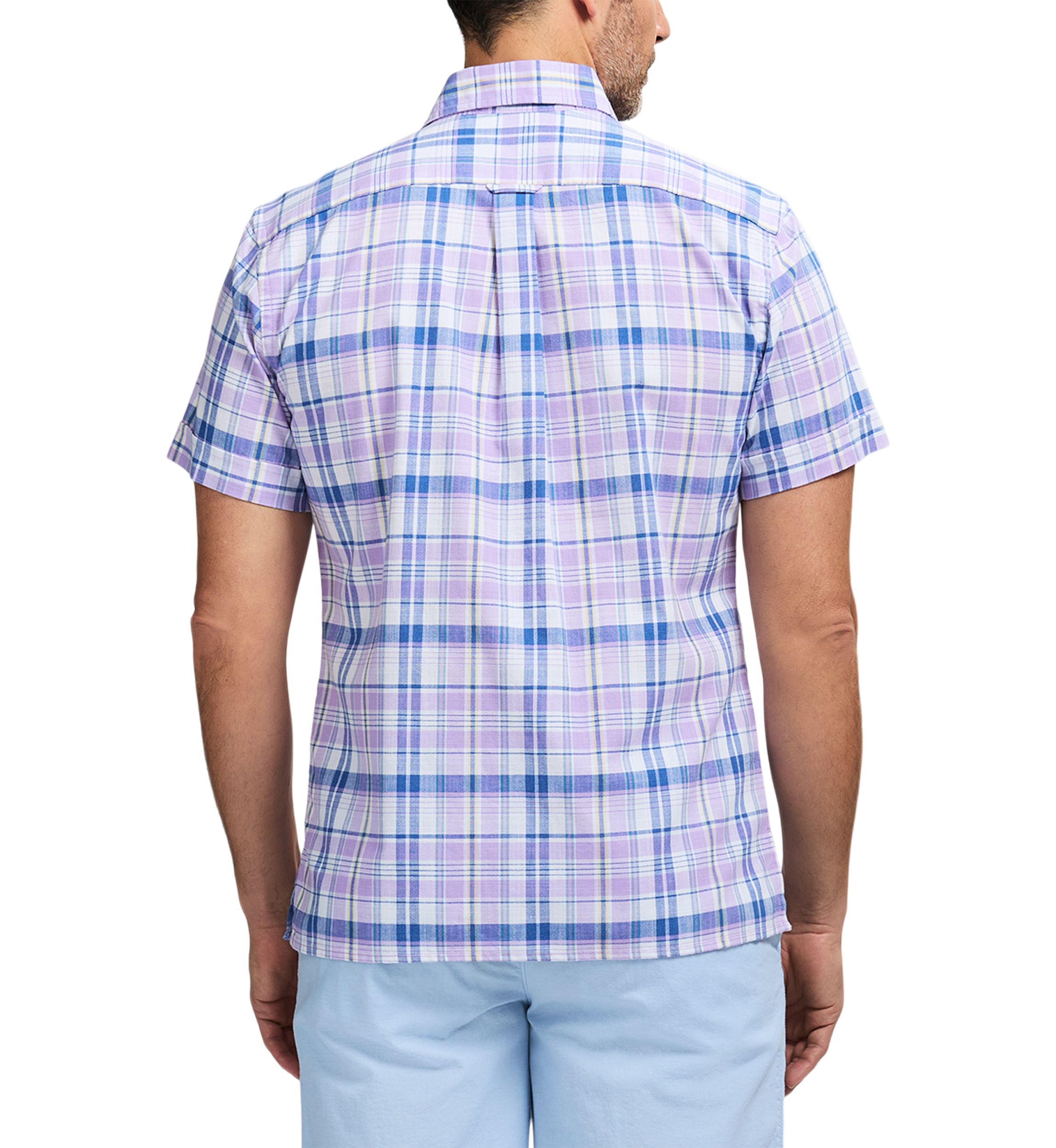 Short Sleeve Madras Plaid Button Down Shirt