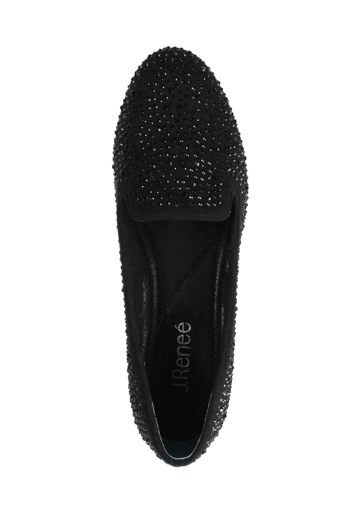 Shimmering with black rhinestones, the Hanuko flats from J Reneé will add a chic, casual finish to your look.