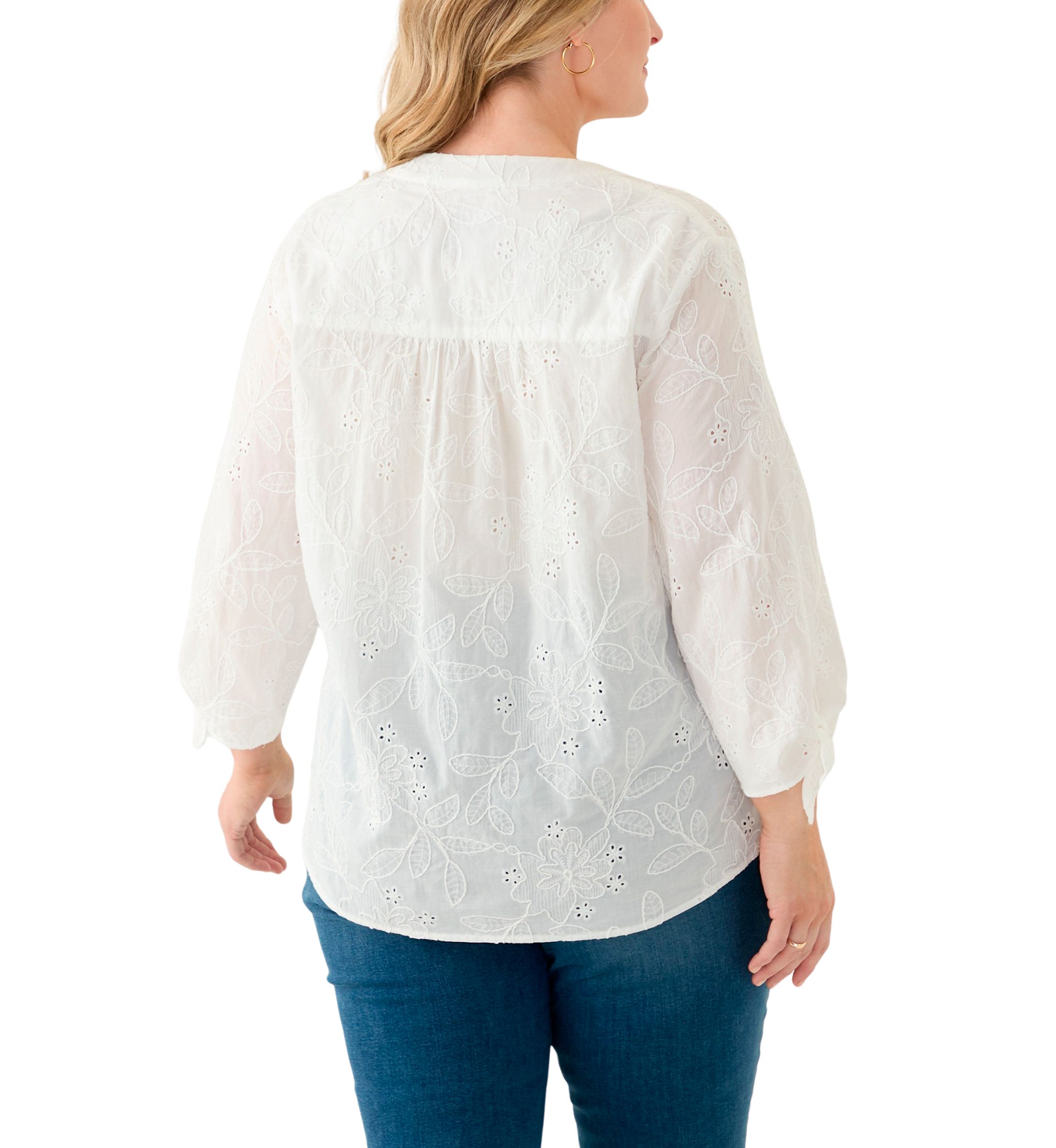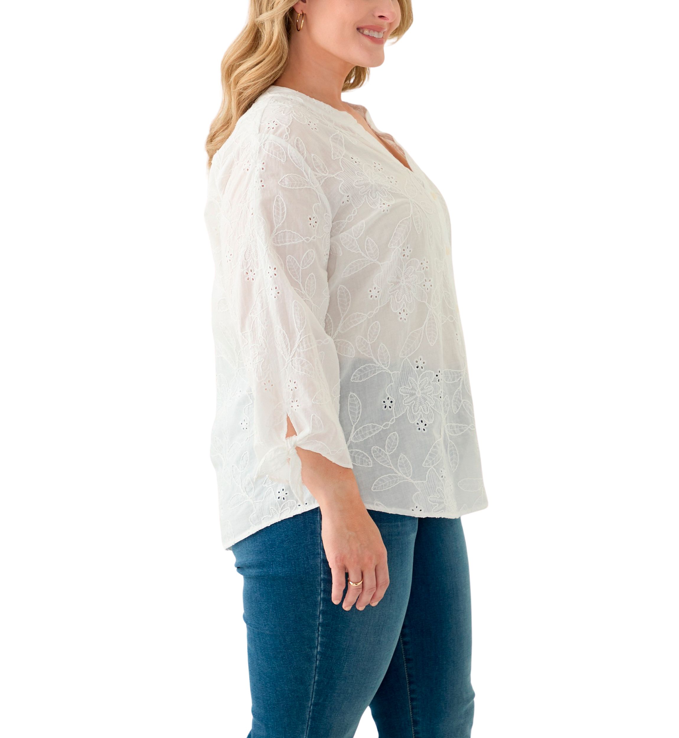 This charming blouse is crafted from 100% cotton, ensuring breathability and comfort all day long. Designed with a split neck and button closure, it offers a relaxed yet polished look. The three-quarter sleeves add a touch of elegance, making it perfect for various occasions. Whether you're dressing up for work or keeping it casual, this versatile blouse is a must-have in your wardrobe.