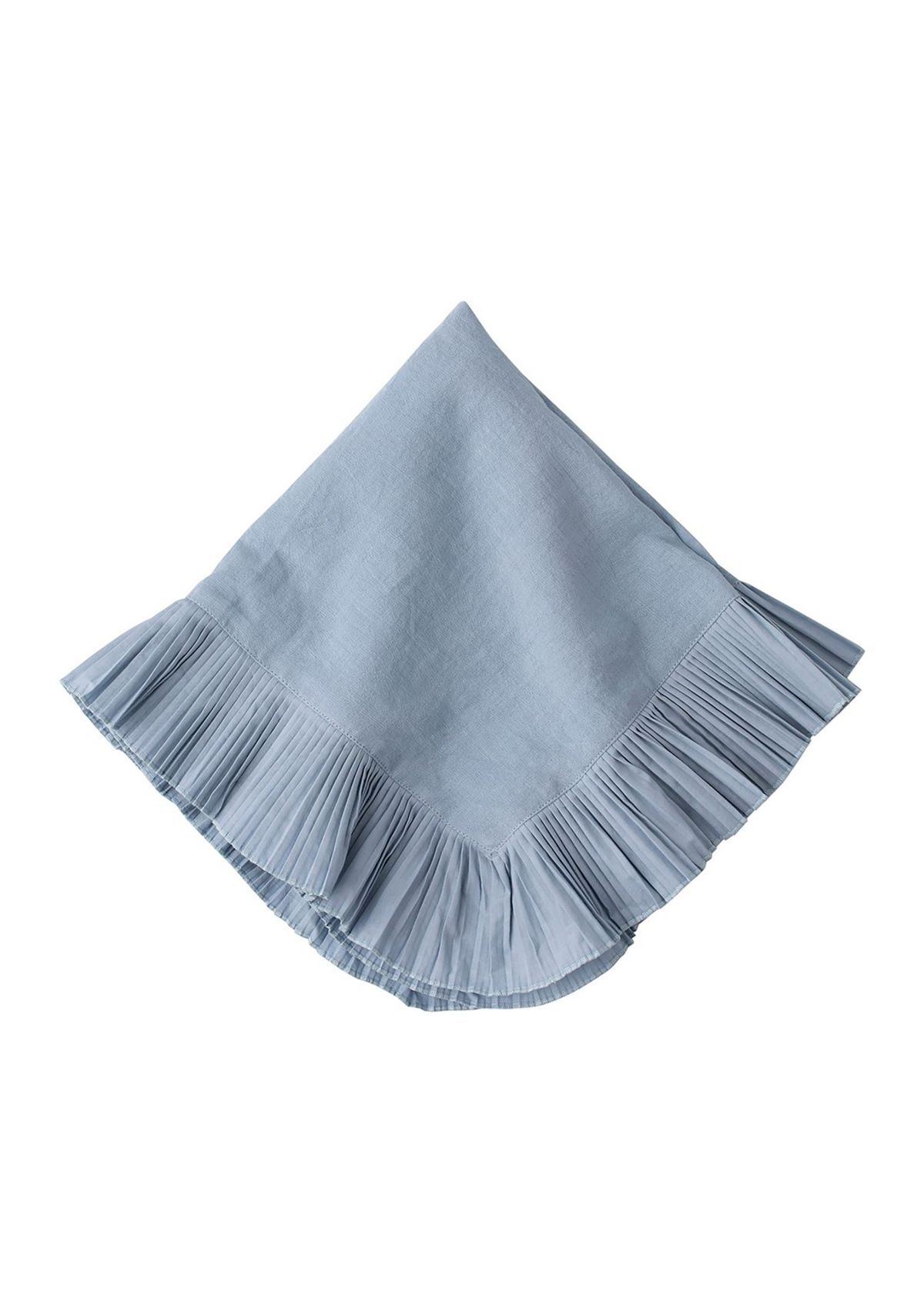 Ridiculously feminine and irresistibly pretty, our Mademoiselle napkin in dreamy chambray blue with knife-pleat ruffle border adds romantic emphasis to every tablescape.
