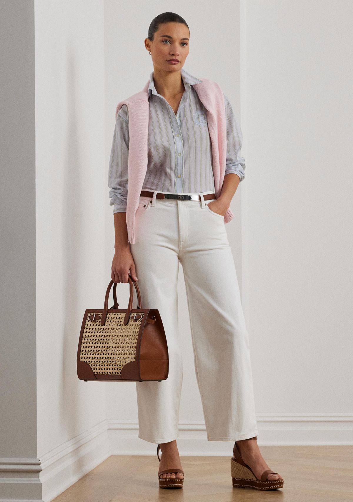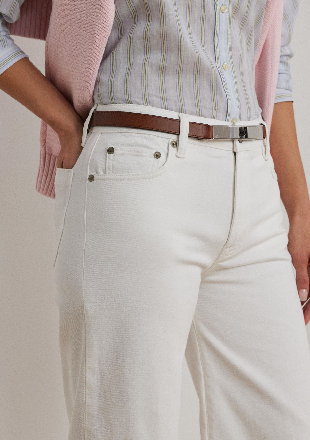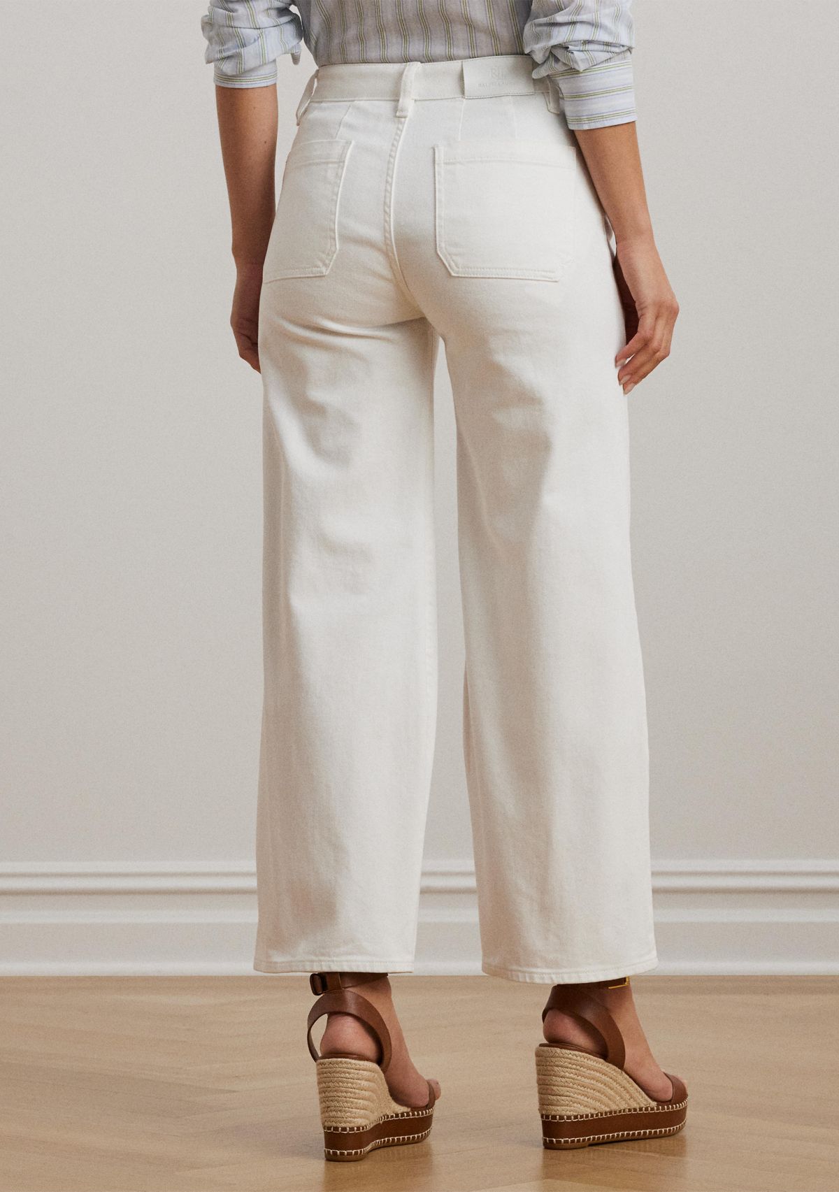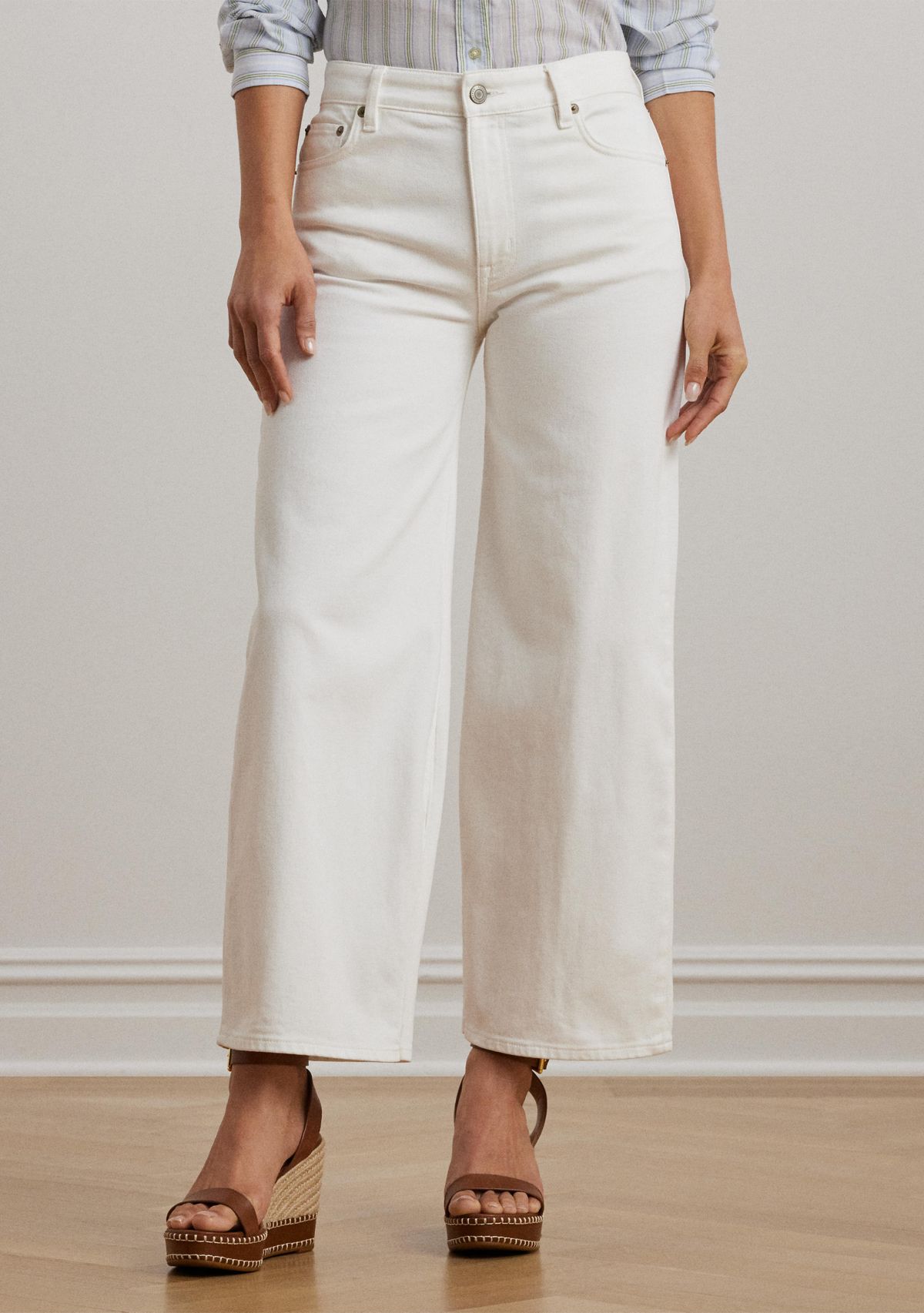 Cut for a chic, cropped wide-leg silhouette, these high-rise jeans from Lauren Ralph Lauren are crafted with comfortable white-wash denim that offers just enough stretch for a relaxed fit and feel. Waist darts and crisp creases at each leg create a tailored finish.