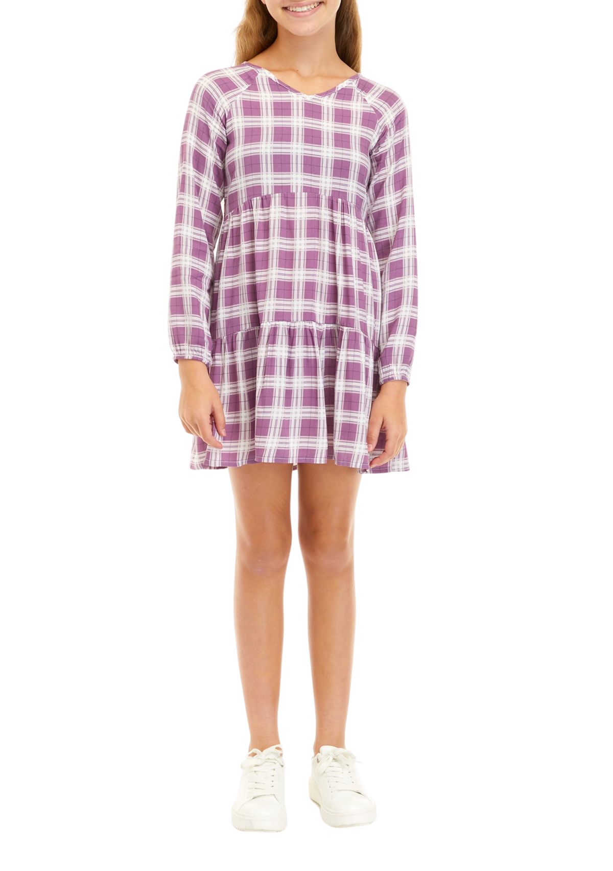 Girls 7-16 Long Raglan Sleeve Tiered Dress