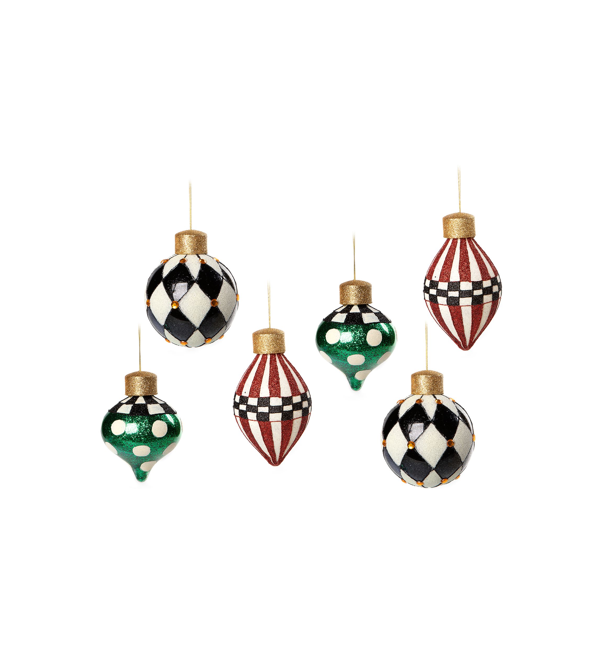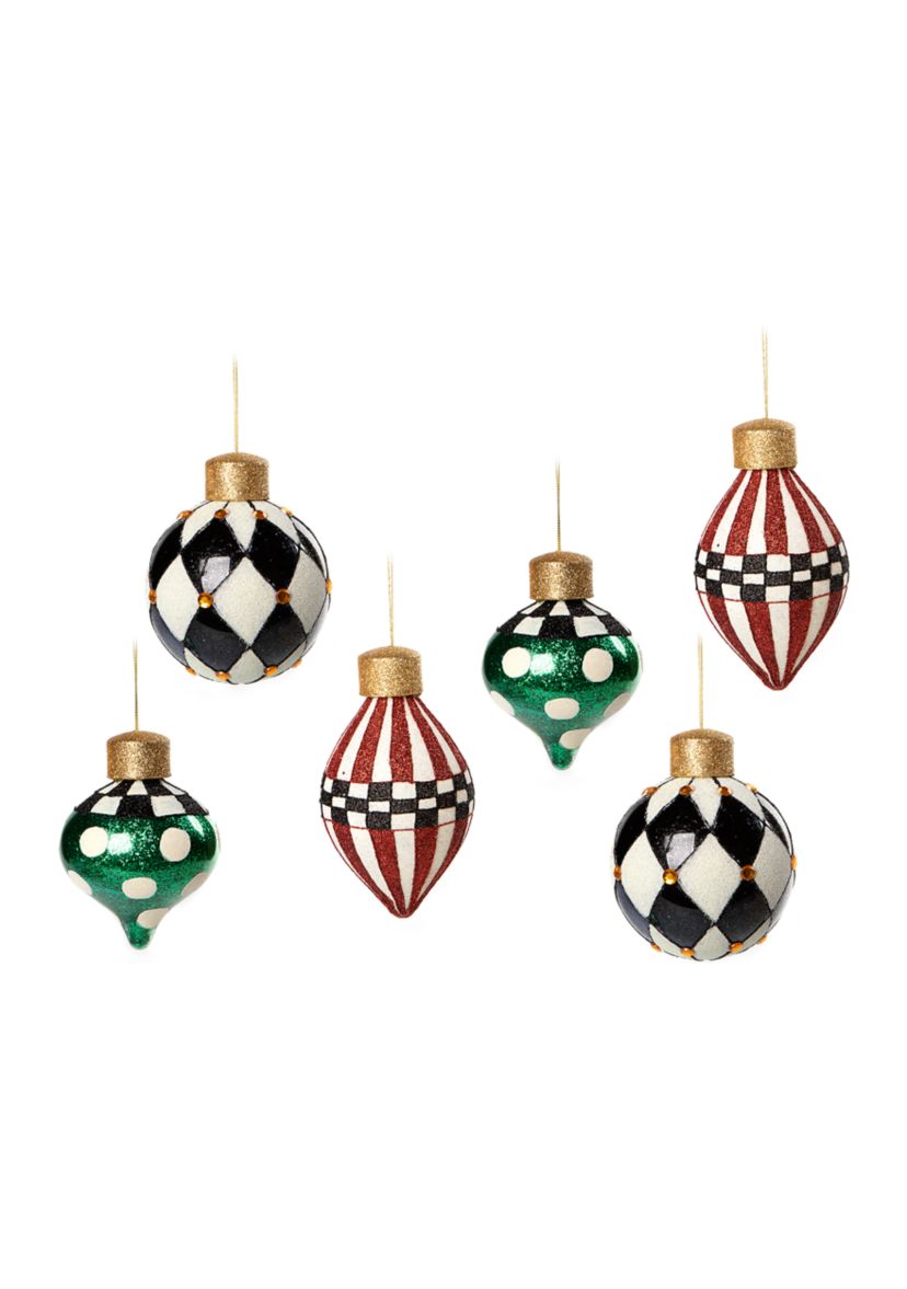 MacKenzie-Childs Set of 6 Jolly Assorted Glass Ornaments