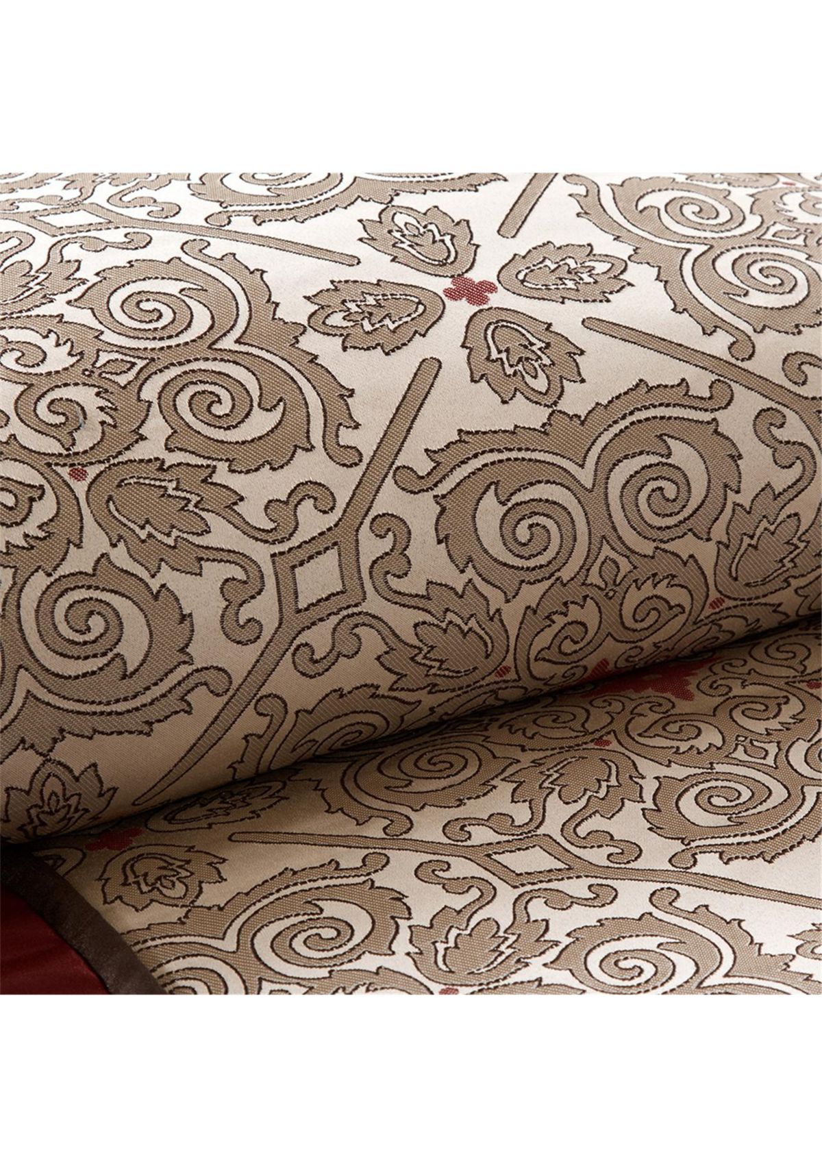 An elegant update, the Madison Park Donovan Comforter Set turns your bedroom into a luxurious getaway. The jacquard woven comforter showcases a modern color block design accented with three embroidered medallions. Matching shams coordinate beautifully with the top of the comforter, while a luxurious bed skirt provides extra charm to the bedspread. A solid reverse adds a bold and neutral touch to the comforter set. Three decorative pillows feature fabric manipulation and embroidered details to complement the design, completing the ensemble.