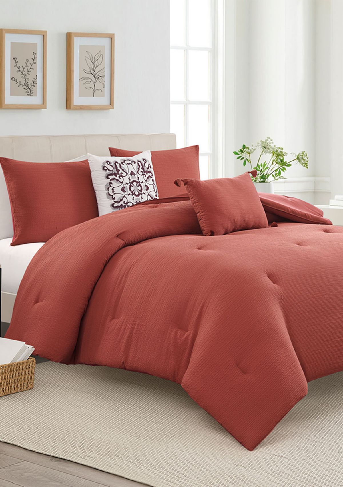 Instantly elevate the allure of any bedroom with the Modern. Southern. Home.™ Doral Comforter Set. It includes one comforter, two decorative pillows, and two shams, all designed to bring a subtle hint of elegance to any home.