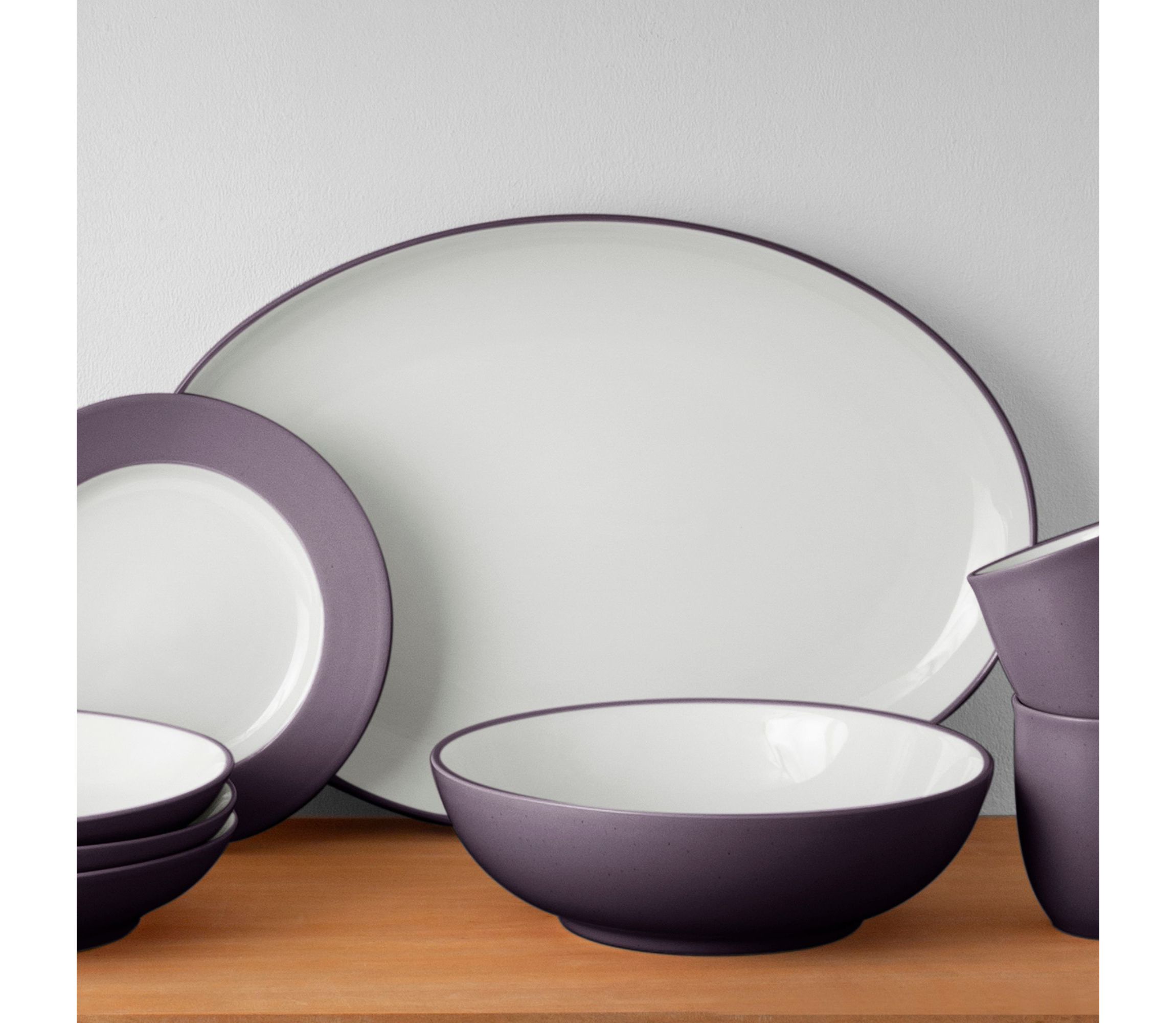 Colorwave Navy features a matte coloration suggestive of overdyed denim, moondrop grapes, tanzanite, and a Phalaris flower. Most items also have a glossy, cream-colored glaze on the inside. Mix and match the different shapes and add a splash of color to your table.