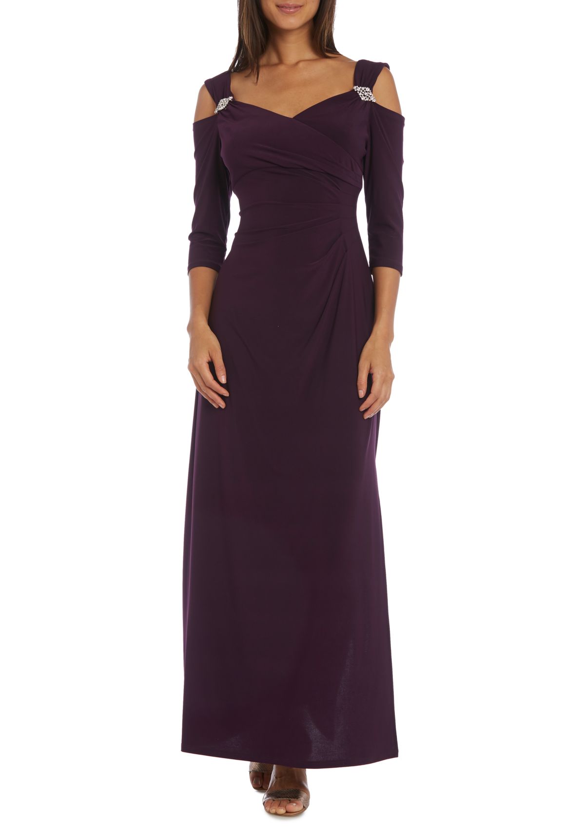 R & M Richards Long Empire Waist Cold Shoulder With 3 4 Sleeves Drs