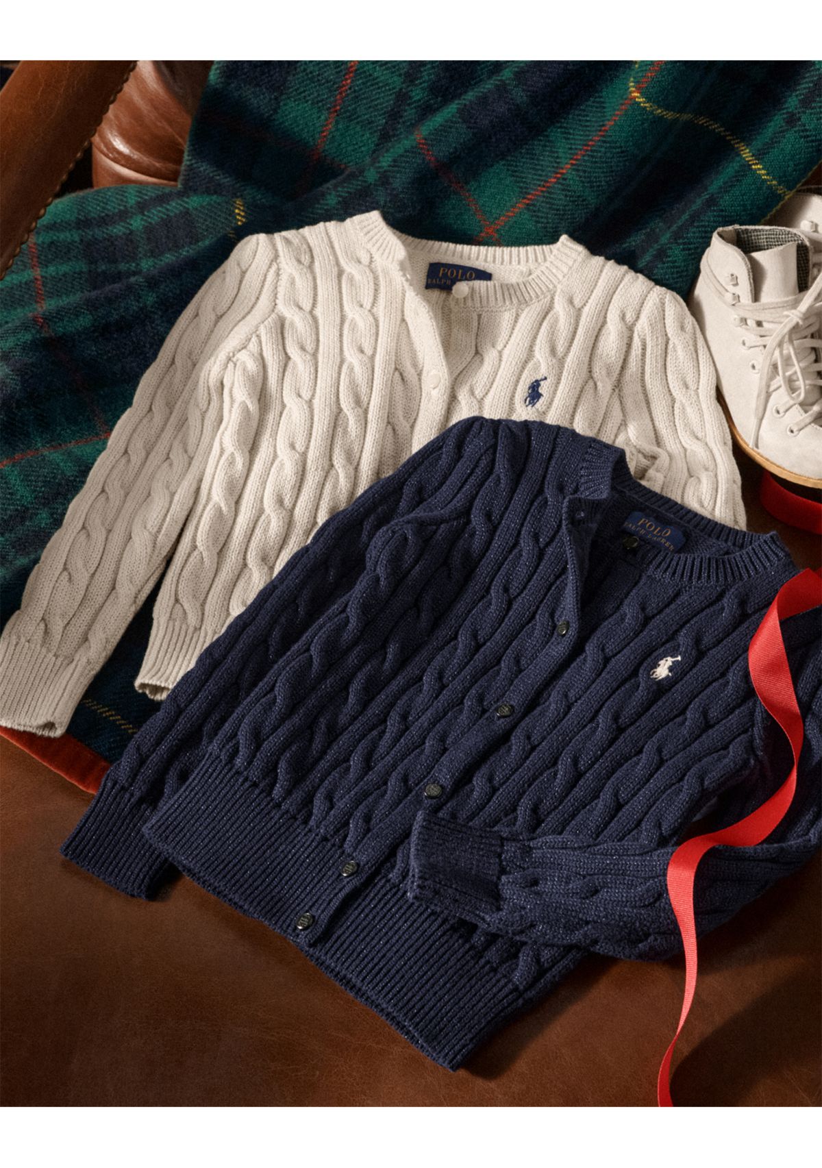 Polo Sport's cardigan features a mini cable pattern that is constructed with medium-weight combed cotton and metallic yarn details for a hint of shimmer.