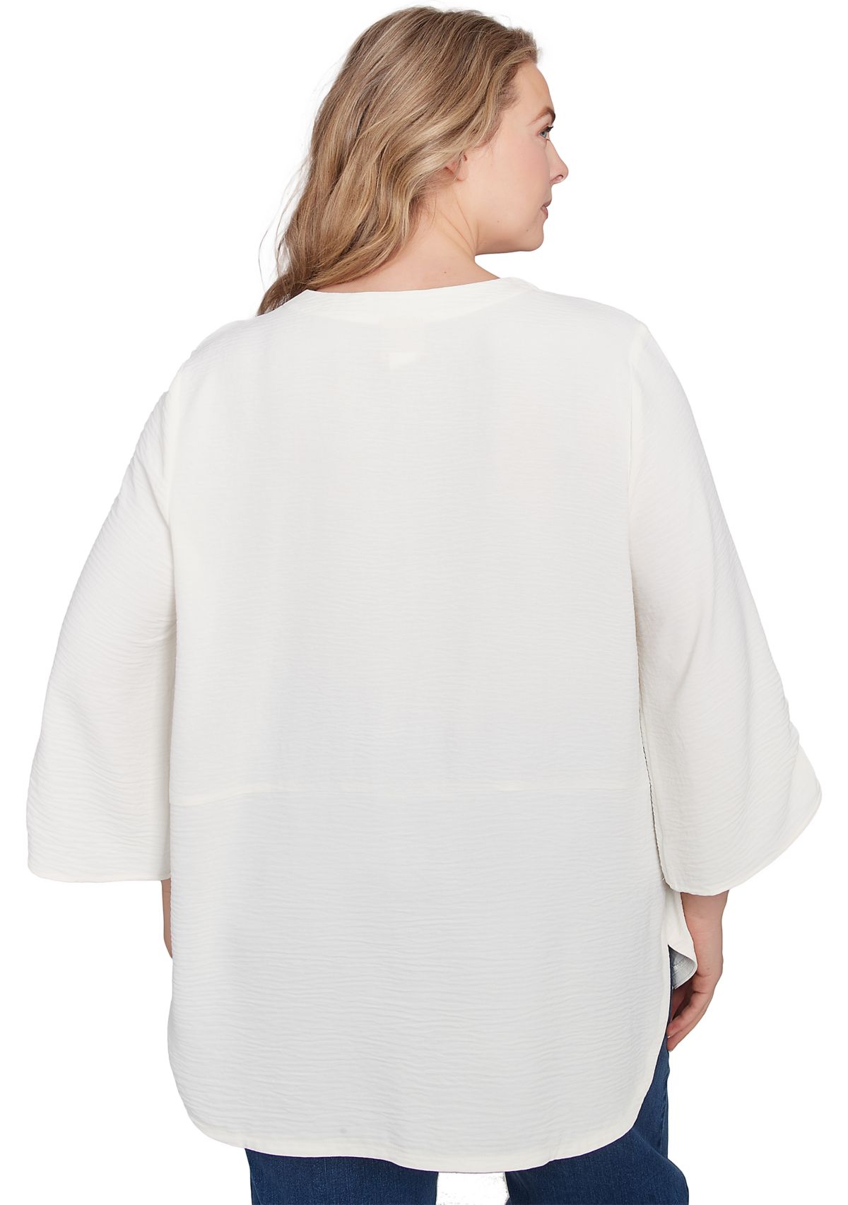 Ruby Rd Plus Size Floral Embroidery Solid Gauze Henley Top