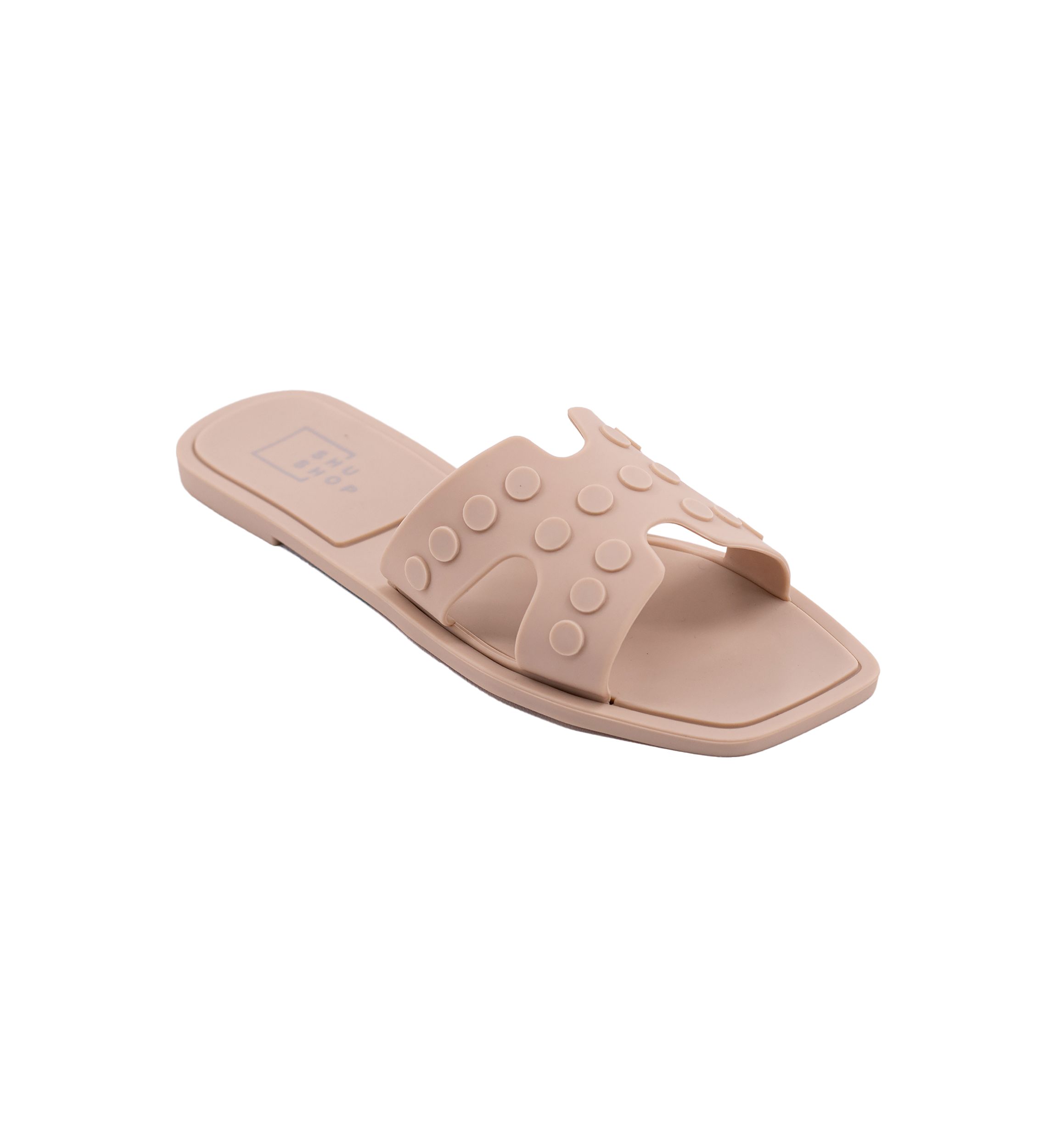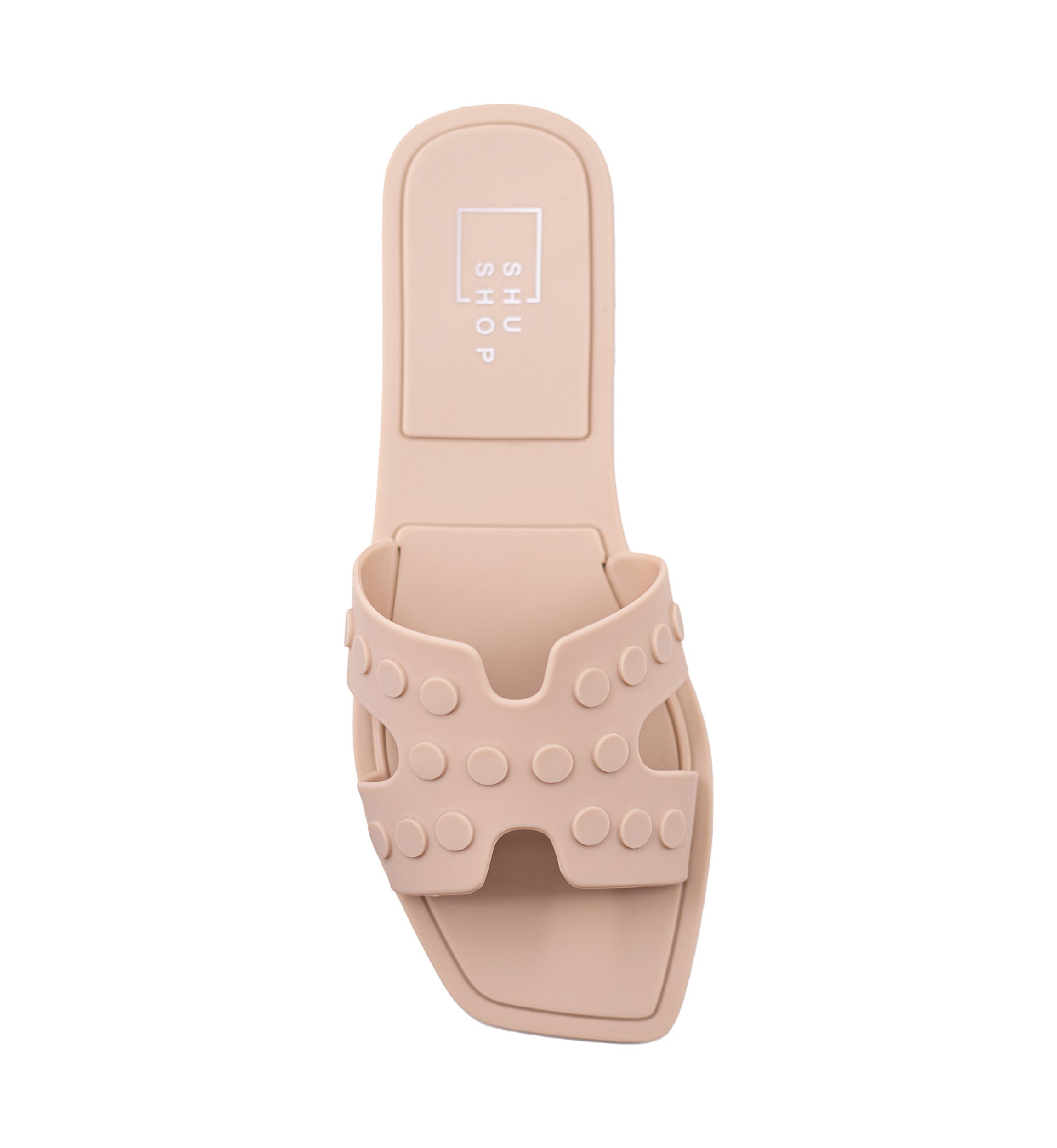 These sandals from SHUSHOP are a must-have for any fashion-forward woman. Crafted from high-quality PVC material, they offer both durability and style. The slip-on design makes them easy to wear, while the classic shaped low heel provides a touch of elegance. Available in a versatile nude color, they effortlessly complement any outfit.
