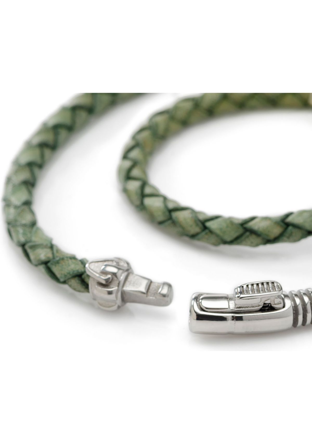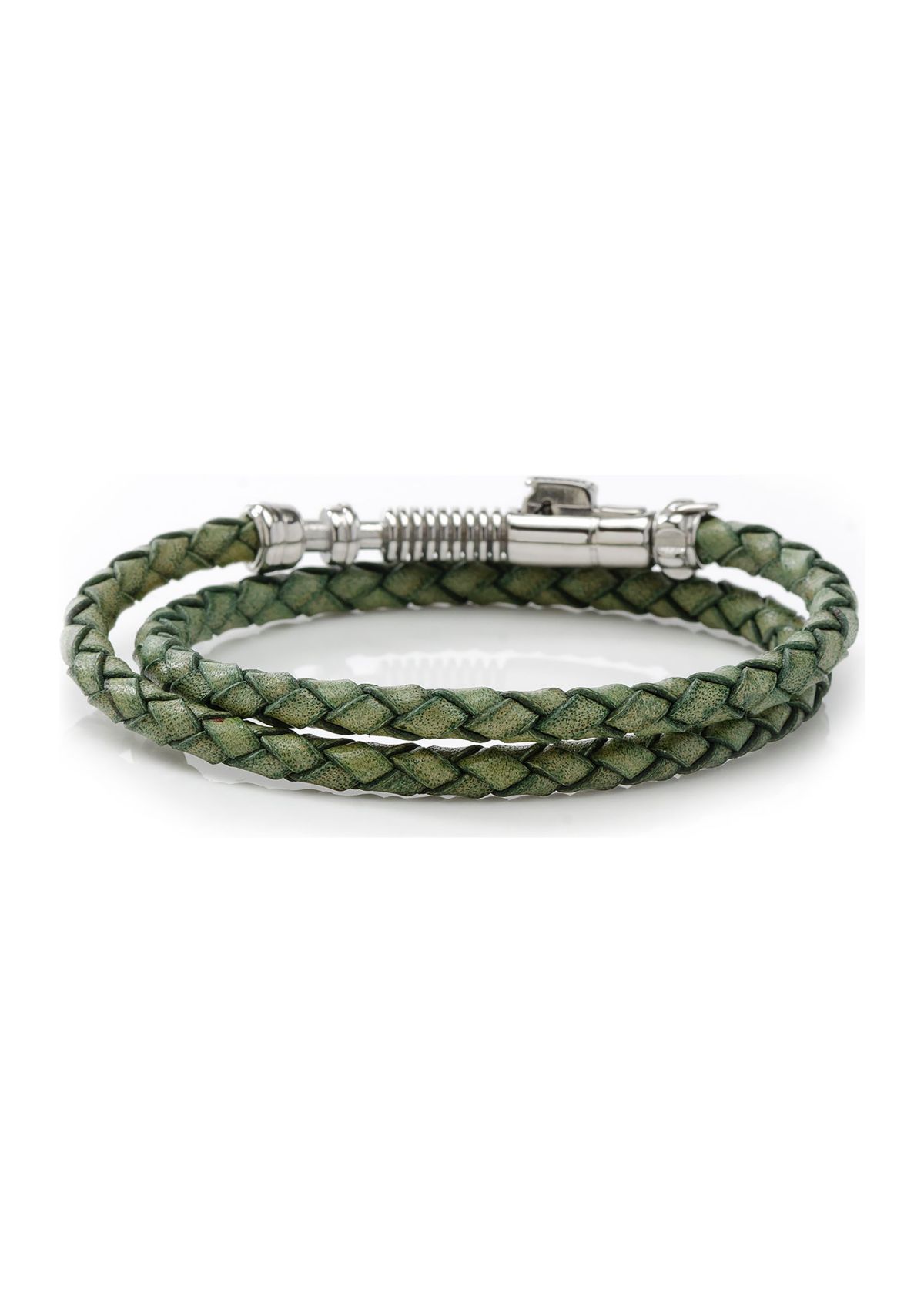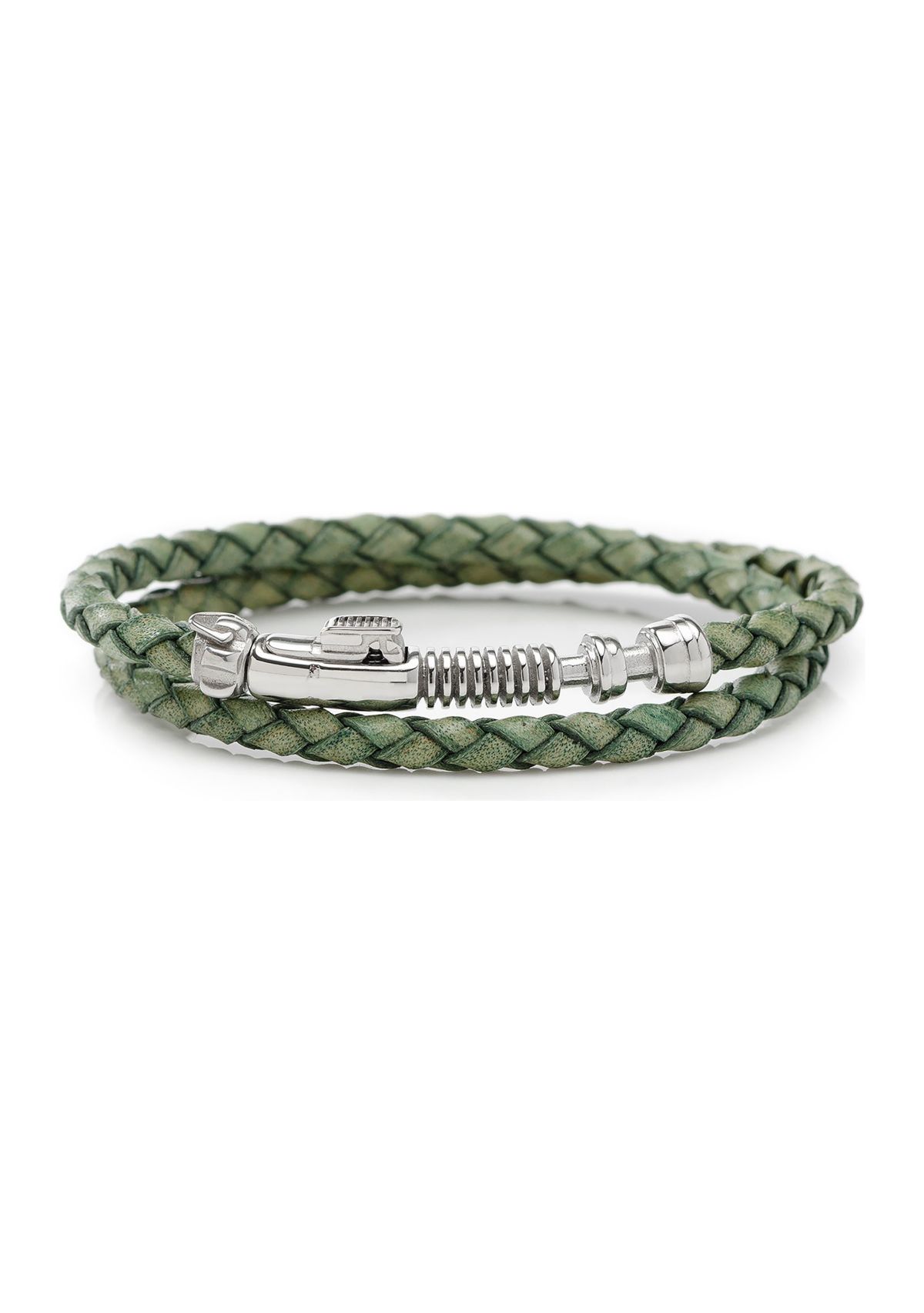 Made with braided green leather, this men's bracelet is a sleek addition to any cuff. Featuring Luke's lightsaber following the events in The Empire Strikes Back, the trigger clasp is located on the power switch; allows for the feeling of turning your personal lightsaber on and off. This bracelet is the perfect accessory to complete your look. Officially licensed by Lucasfilm LTD.