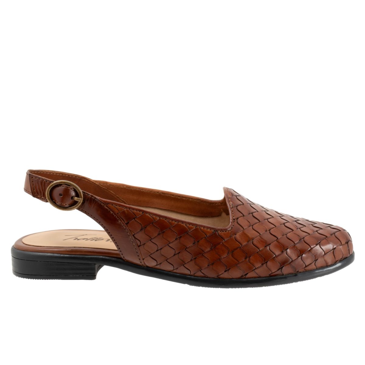 The Lea sling has a beautiful "fish scale" woven pattern in premium rich leathers. The interior has soft lining and a leather lined footbed.