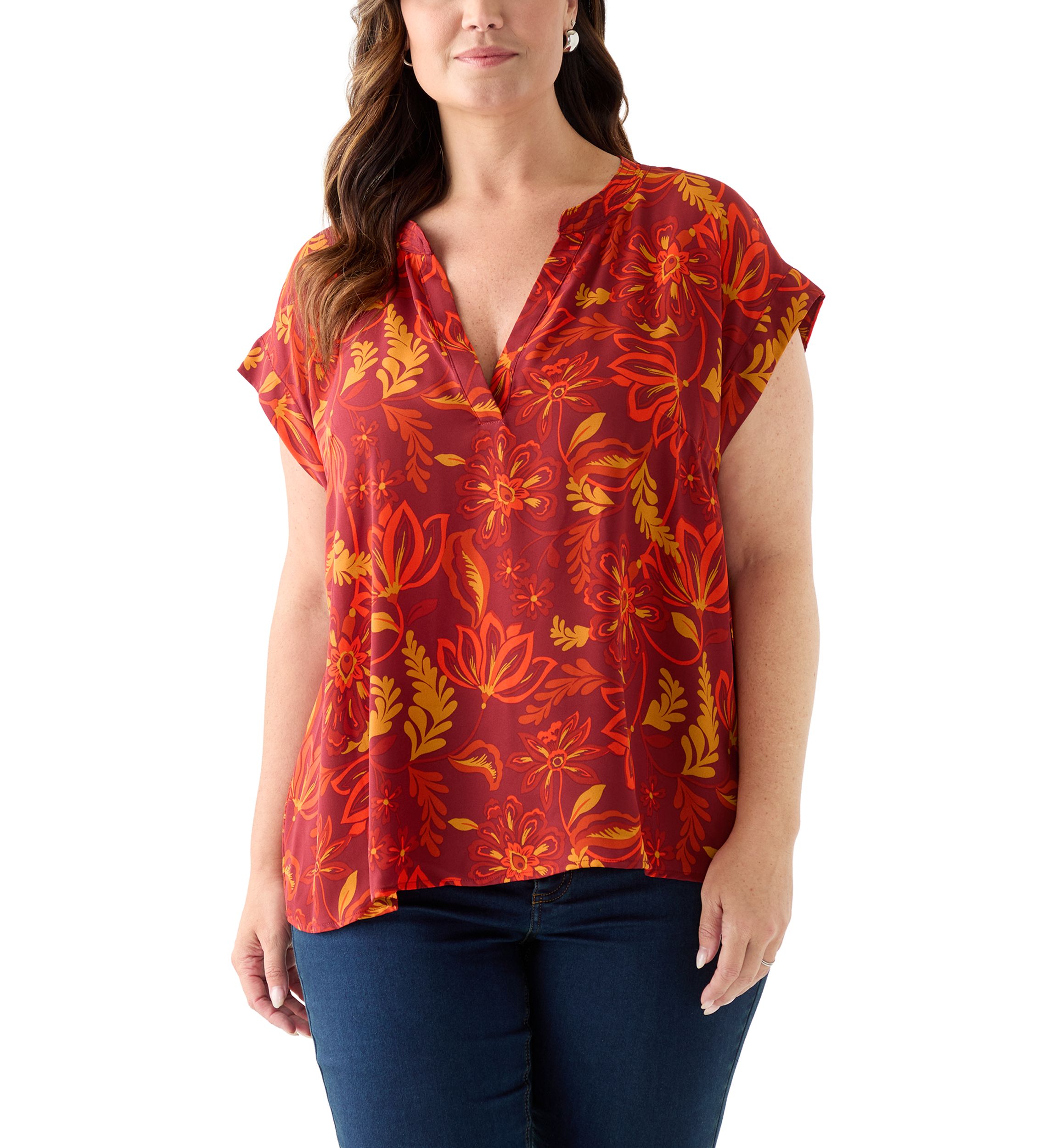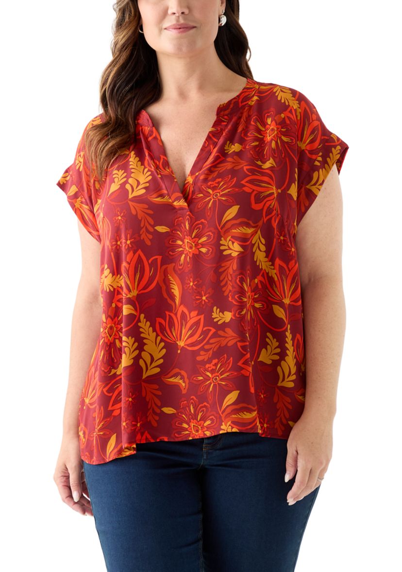 Vince Camuto Plus Size Short Sleeve V-Neck Front Placket Blouse