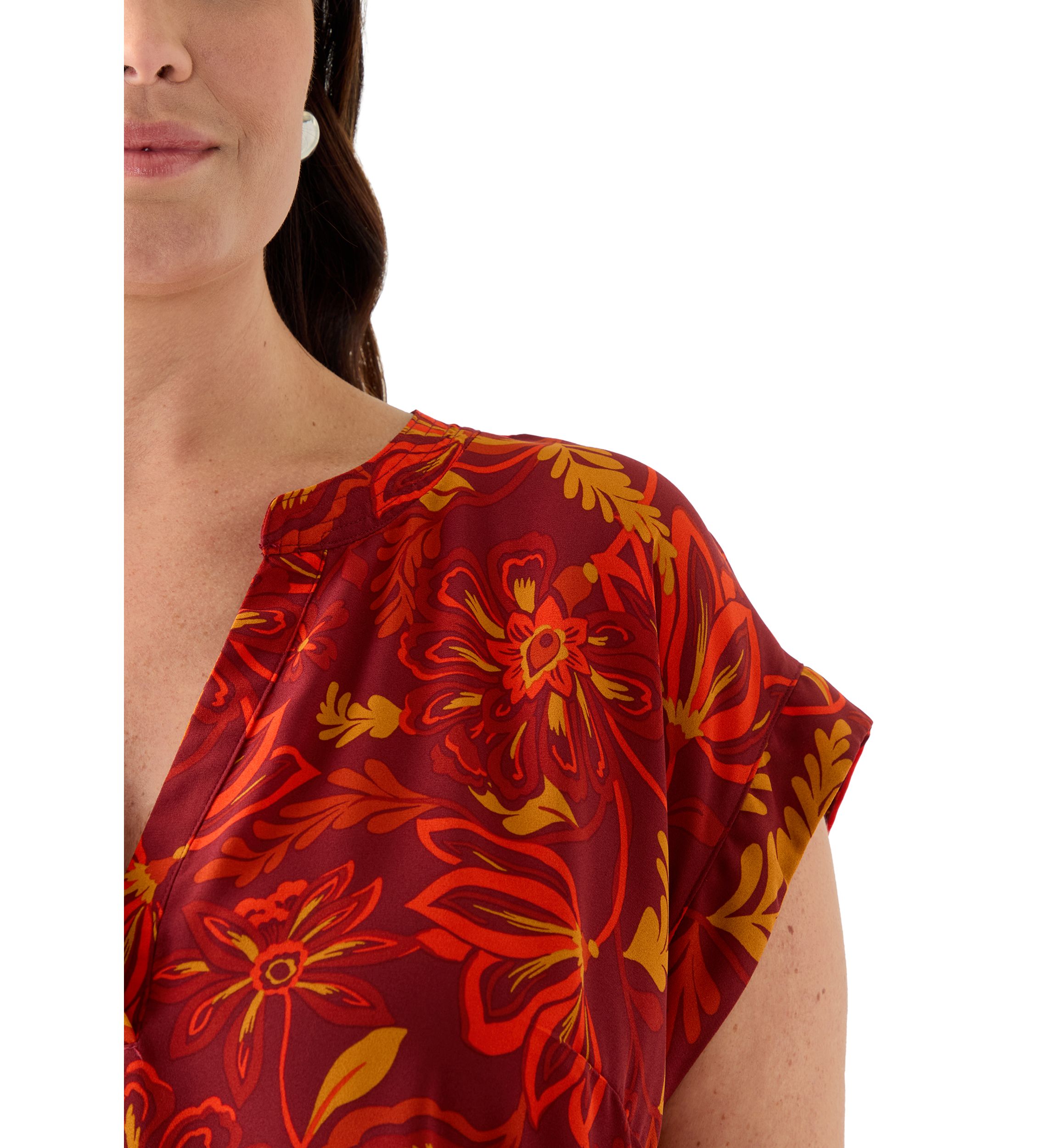 Plus Size Short Sleeve V-Neck Front Placket Blouse
