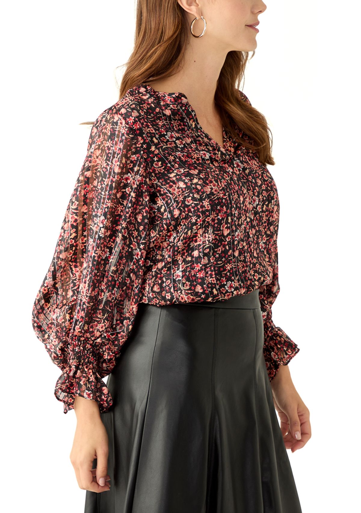 Vince Camuto Women's Long Sleeve Split Neck Floral Blouse