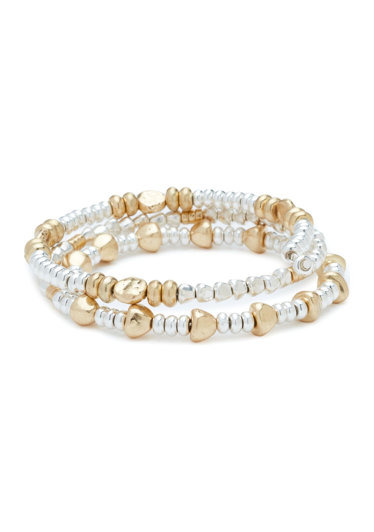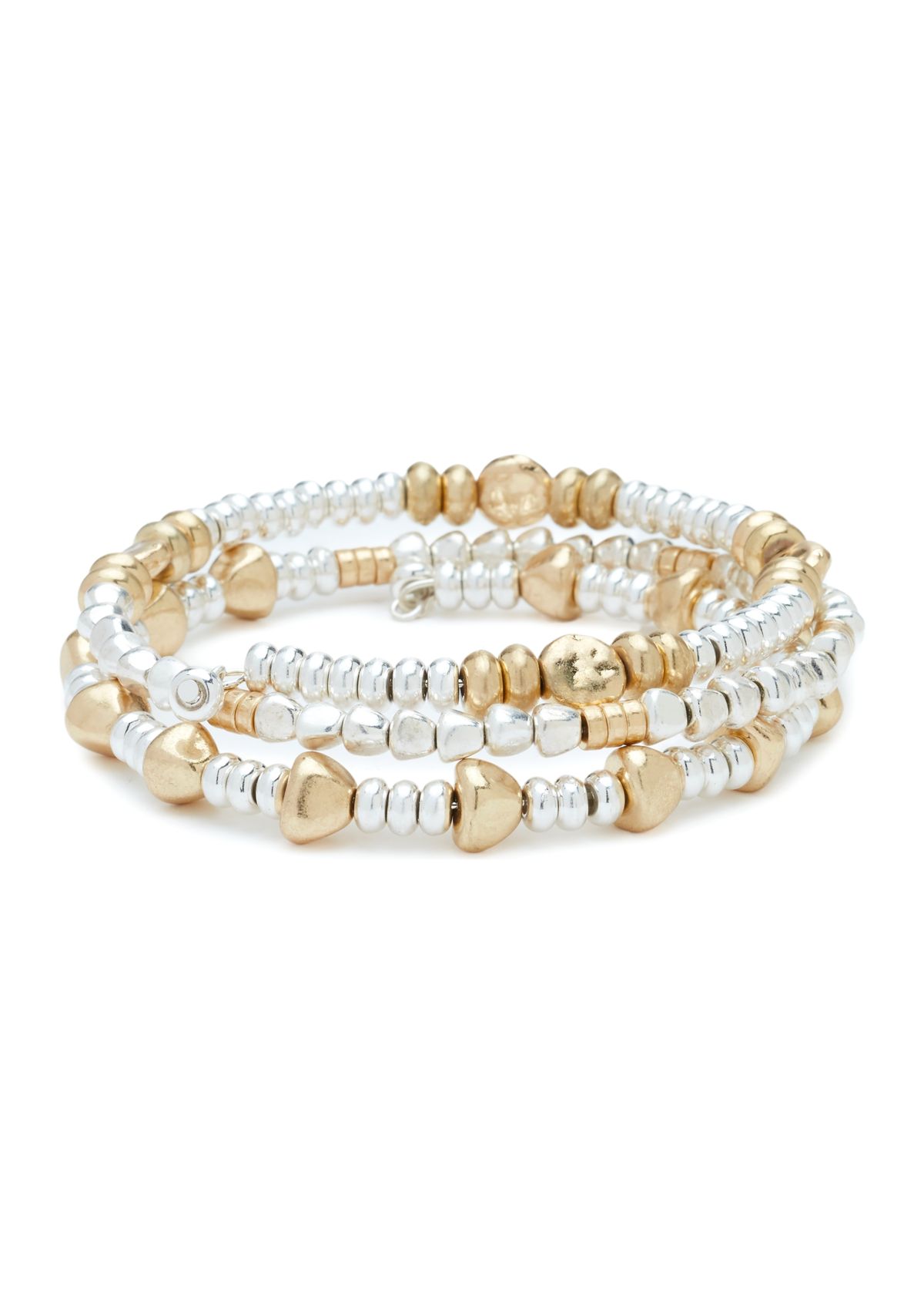 Add modern appeal to your bracelet stack with this two-tone beaded coil bracelet from Wonderly.
