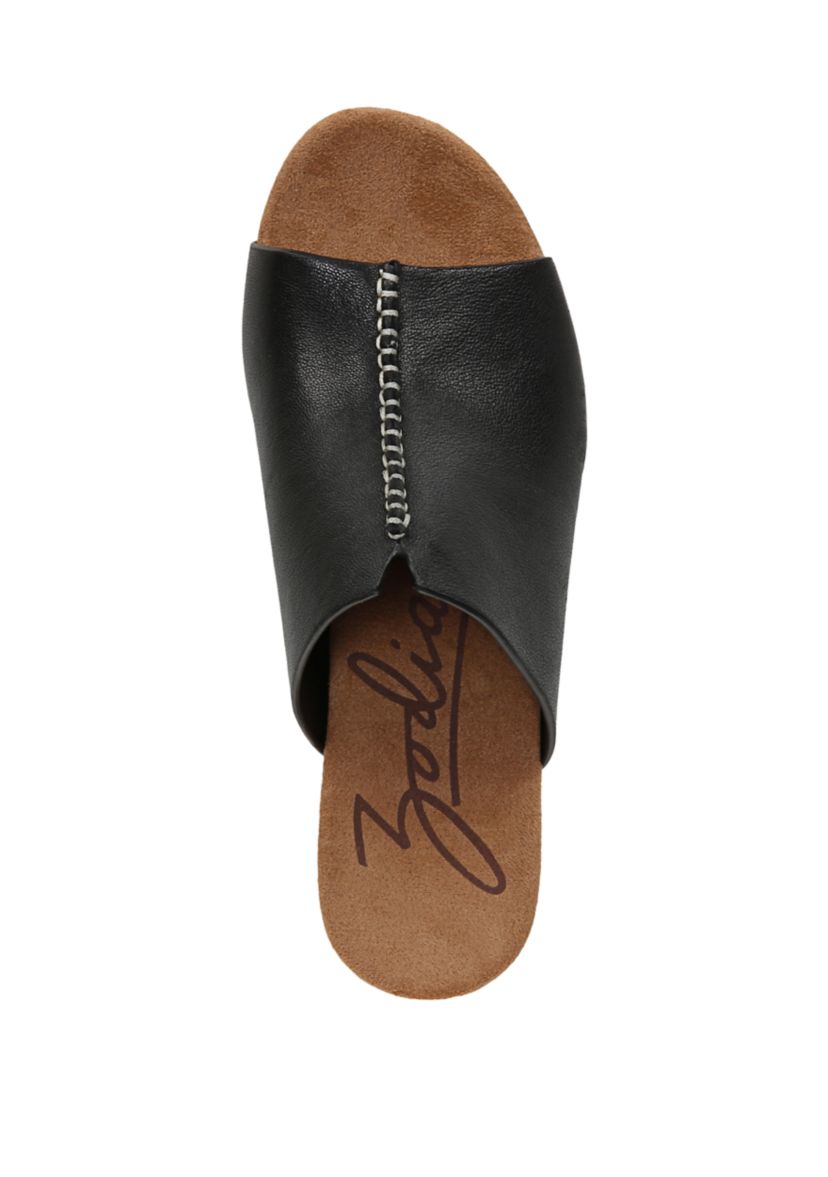 A thick paneled upper with stitches highlight these sandals by Zodiac that boast a bold wedge heel for a stylish finish.